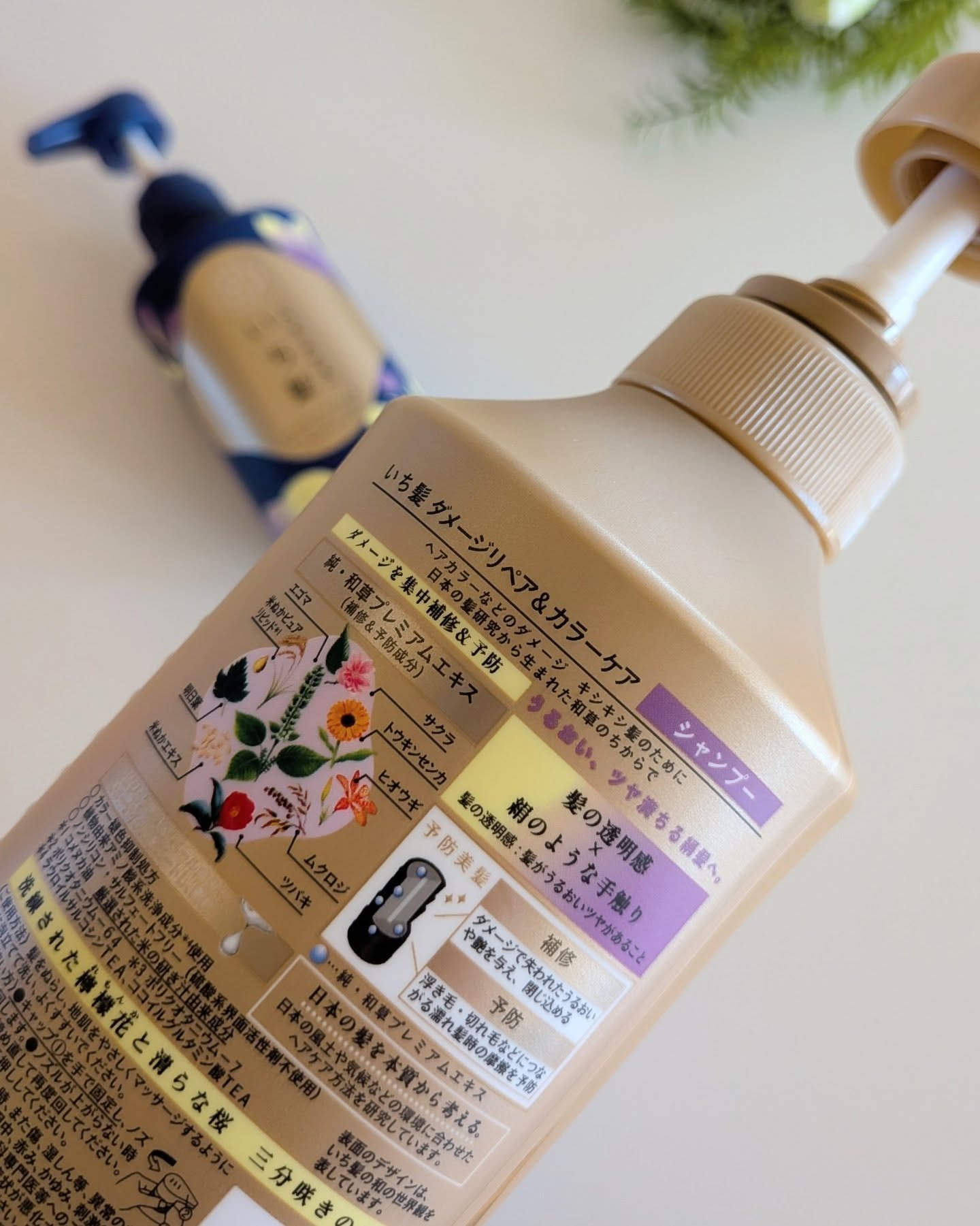 - ※2026年2月6日、リニューアル。尚、これにかかる商品の返品・交換は承っておりません。 リニューアル発売 ●「日本の髪を本質から考える。*1」ヘアケアブランド ●日本の髪研究から生まれた「和草のちから」でダメージを補修&予防する「予防美髪」ケアシリーズ ●補修&予防成分「純・和草プレミアムエキス*2」配合 ●「髪の透明感*3」×「絹のような手触り」で、見ても、ふれても、感動する絹髪へ ●カラーなどで悼んだキシキシ髪も、うるおいツヤ満ちる絹髪へ導きます。 ●キューティクルをコートし、密封する「リピジュア®*4&ベール成分*5」配合 ●植物由来アミノ酸系洗浄成分*6使用のノンシリコンシャンプー ●カラーなどによるダメージが蓄積したキシキシ髪もクリーミーな泡で、きしみなく洗えます。 ●ダメージで失われたうるおいや艶を閉じ込めて浮き毛・切れ毛などにつながる濡れ髪時の摩擦を防ぎます。 ●カラー褪色抑制処方 ●サルフェートフリー*7処方 ●洗練された檸檬花(れもんか)と清らな桜 *1:日本の風土や気候などの環境に合わせたヘアケア方法を研究しています。 *2:エゴマ、米ぬかピュアリピッド(コメヌカ油/厳選された米の研ぎ汁由来成分)、サクラ、トウキンセンカ、米ぬかエキス、明日葉、ヒオウギ、ムクロジ(シャンプーに配合)、ツバキ *3:髪がうるおいツヤがあること *4:ポリクオタニウム-64 *5:ポリクオタニウム-7 *6:ラウロイルサルコシンTEA、ココイルグルタミン酸TEA *7:硫酸系界面活性剤不使用