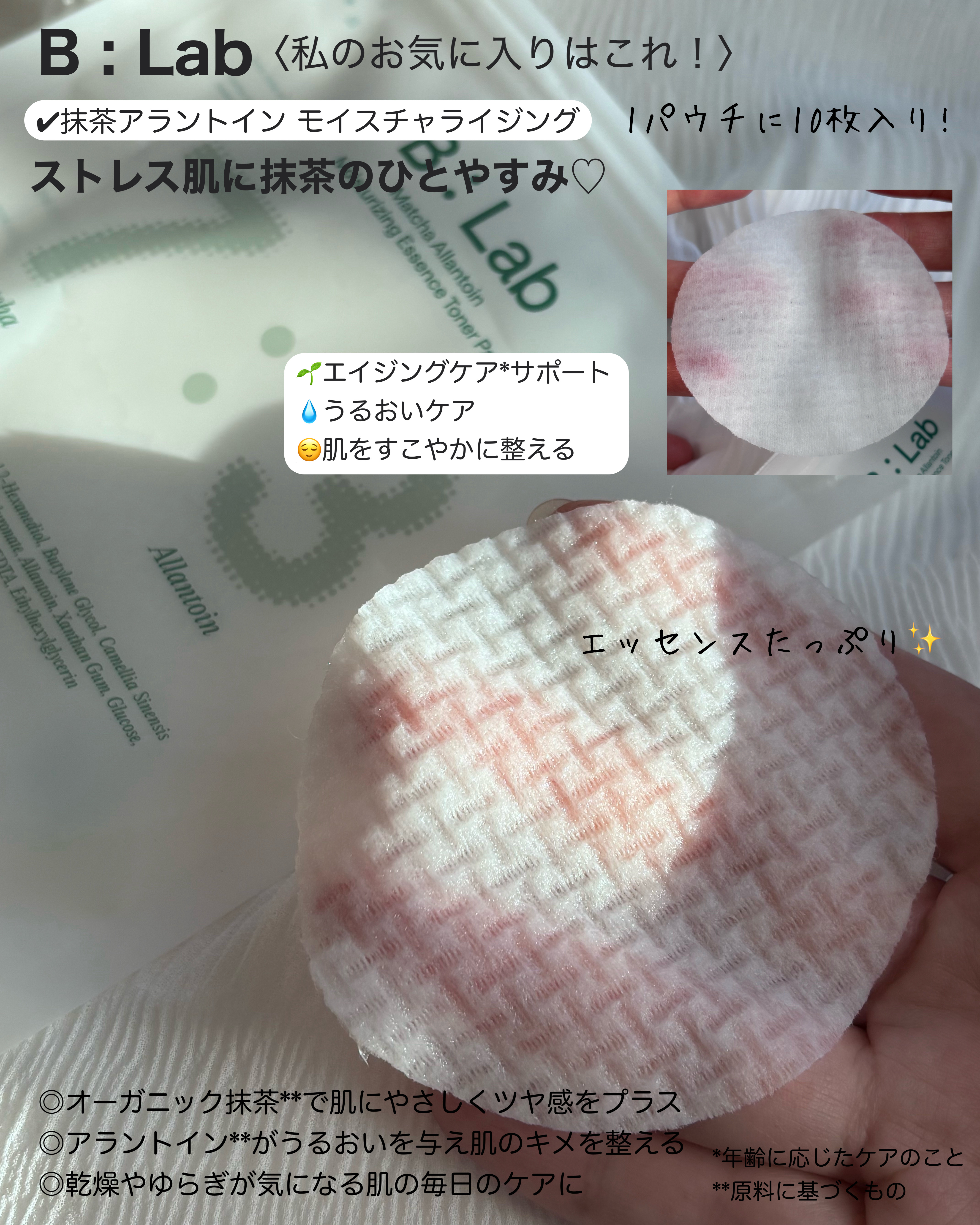 B:Lab様のEssenceTonerPadFullSetをお試しさせて頂きました。5種類の成分の違うトナーパッドがあるのでその日の肌悩みに合わせて使い分けできるのですごく使いやすいです。どれも10枚ずつ入っており美容液がヒタヒタに入っている...