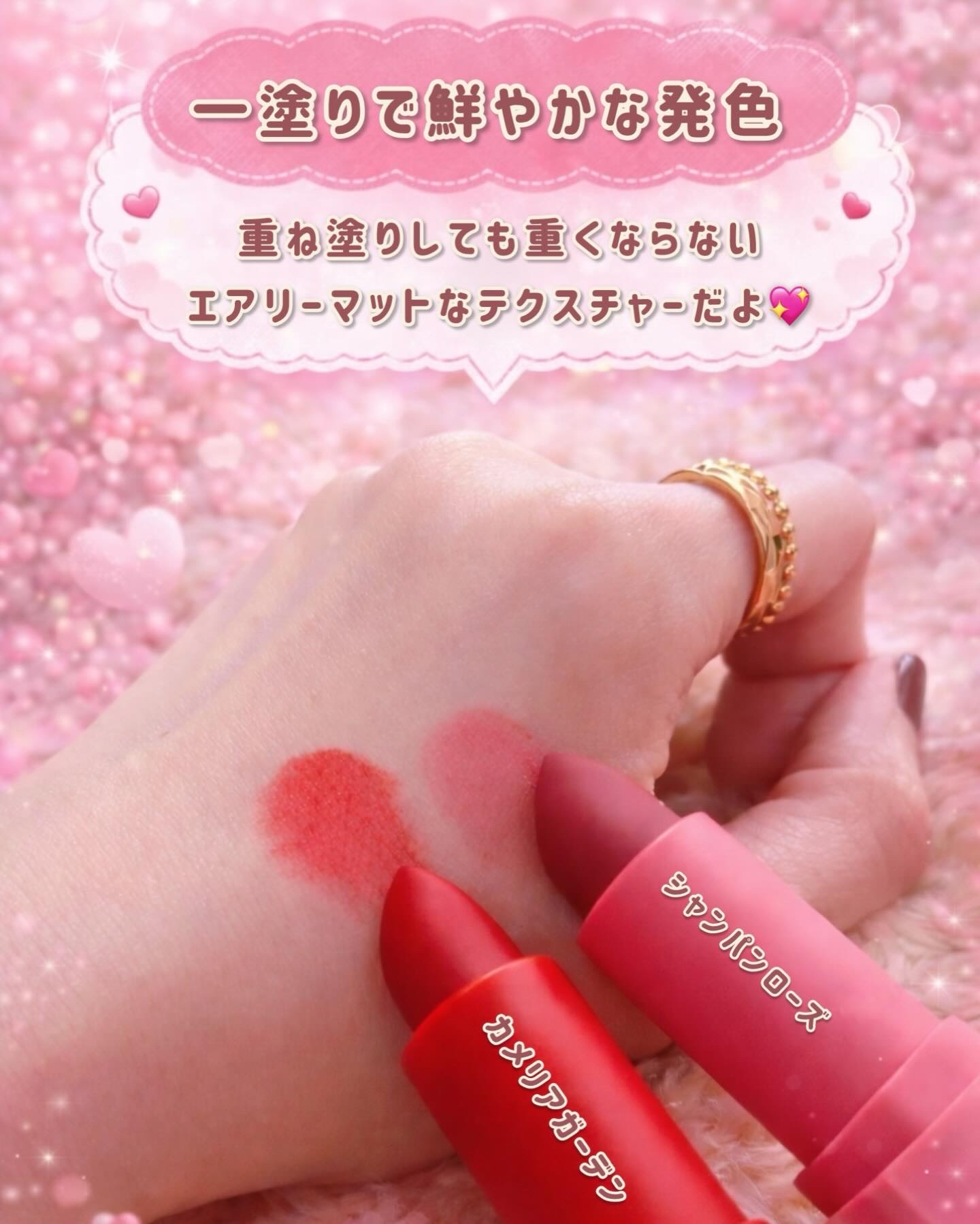 | 口紅・グロス・リップライナーランキング第53位 | めちゃくちゃ塗り心地が軽いのに、色のせてすぐティッシュOFFしても色がめっちゃ残る!! | 詳細を見る |