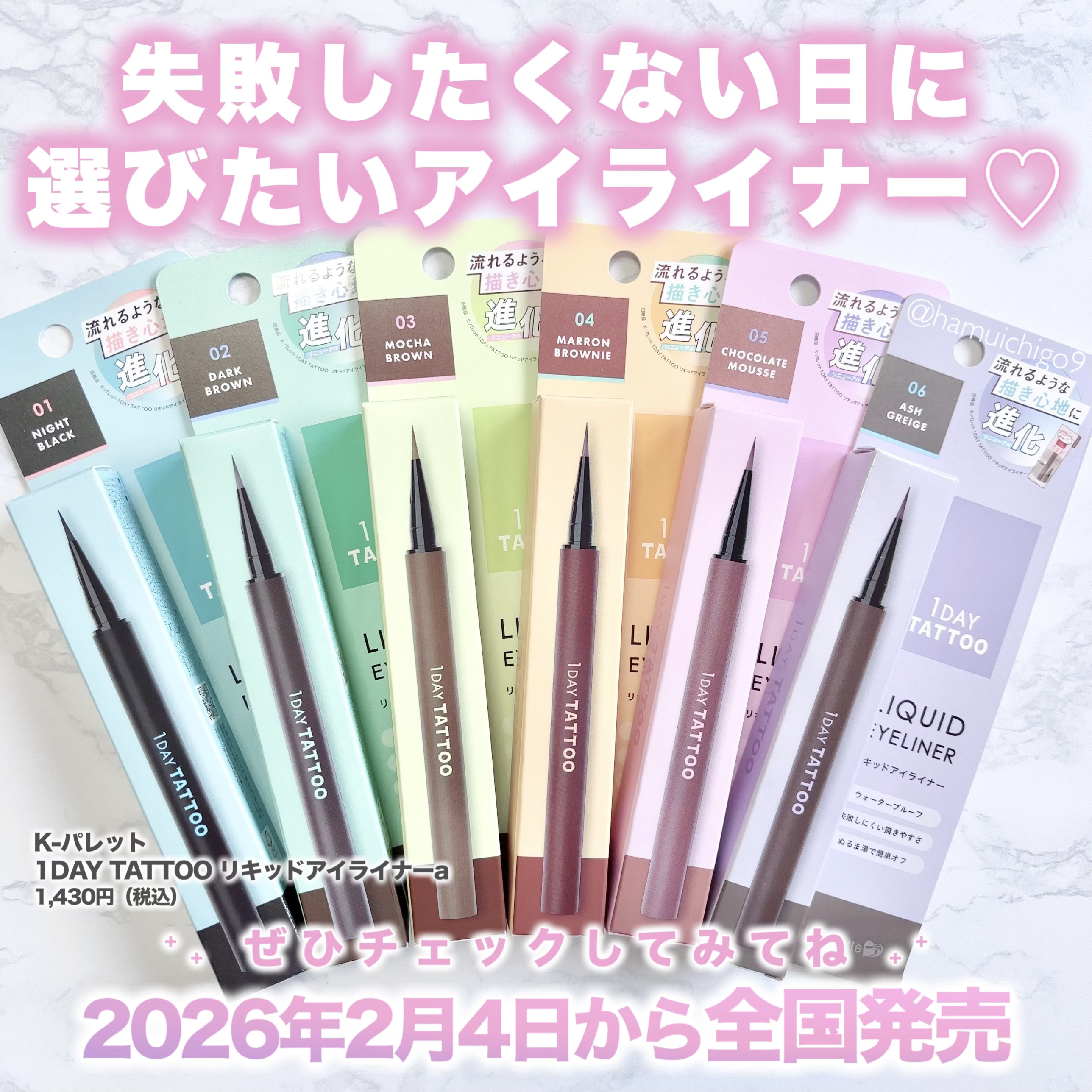 \人気のリキッドアイライナーがリニューアル/K-パレット1DAYTATTOOリキッドアイライナーa全6色🖤01ナイトブラック🤎02ダークブラウン☕️03モカブラウン🌰04マロンブラウニー🍫05チョコレートムース🩶06アッシュグレージュK-パレ...
