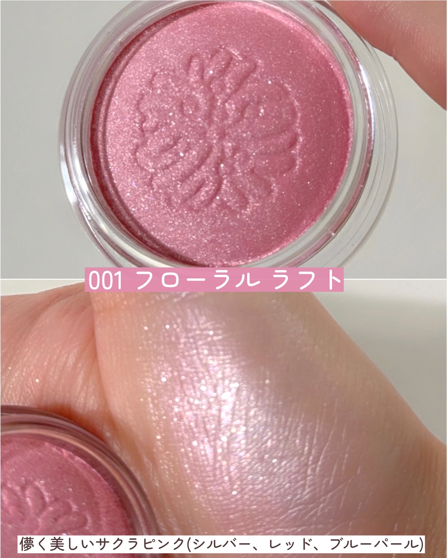 しっとりなめらかな粉質で、肌に光が溶け込む。 ツヤの美しさや発光具合は写真の通り。 ひと塗りで極上の艶を纏うことができます。 私が1番感動したのは 03 パールグロウ 水色やパープルをはじめとした細かいラメがぎっしり。 まるでダイヤモンドのような輝きでこれが最高💎 いざ肌に乗せると透明感たっぷりで白浮きしません。 今日アイシャドウとして使ってみたらまぶたが濡れたように艶めいて最高だった!! ラメ大好き芸人のみなさんは絶対チェックして欲しいです。 パケもしっかり可愛いです♡ 中身も見た目ももはや無敵。 これ、買わない理由ある??