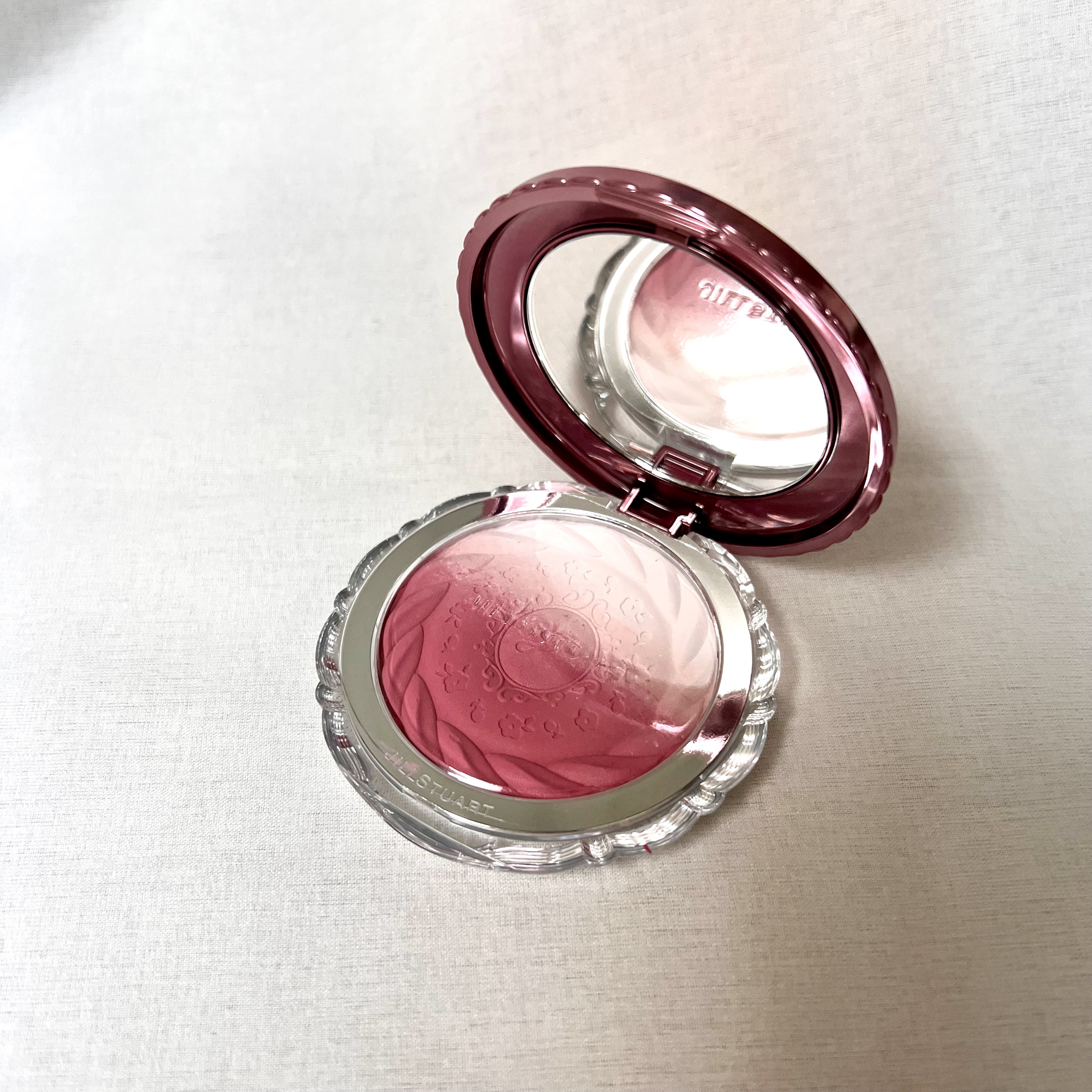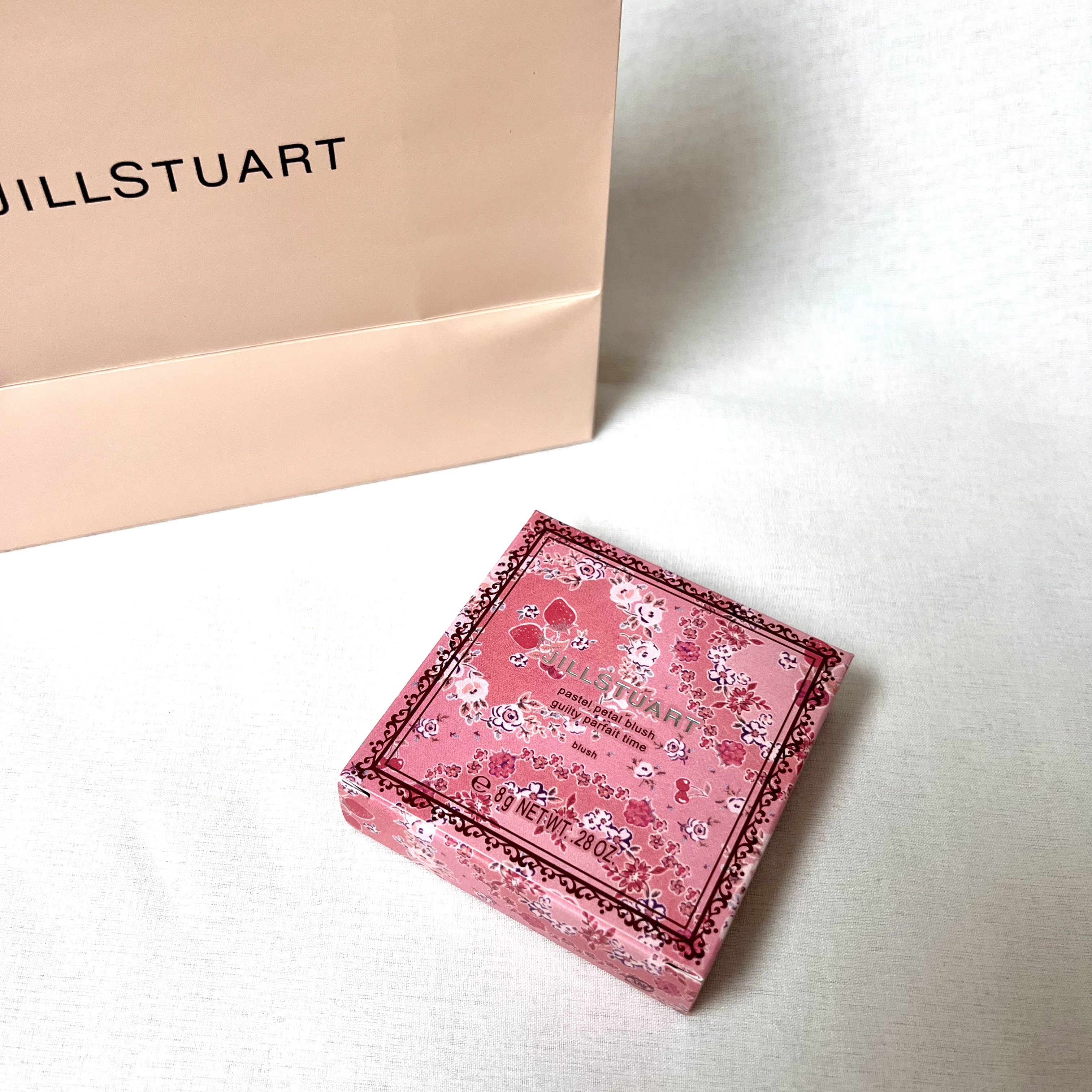 ベリーレッドだから発色よくて血色感でるカラーだけど、2色混ぜて使うと失敗しにくい 型押しが消えるのがいやになるくらい可愛い🍓 JILL STUART パステルペタル ブラッシュ 102 berry parfait ¥4,620(税込)