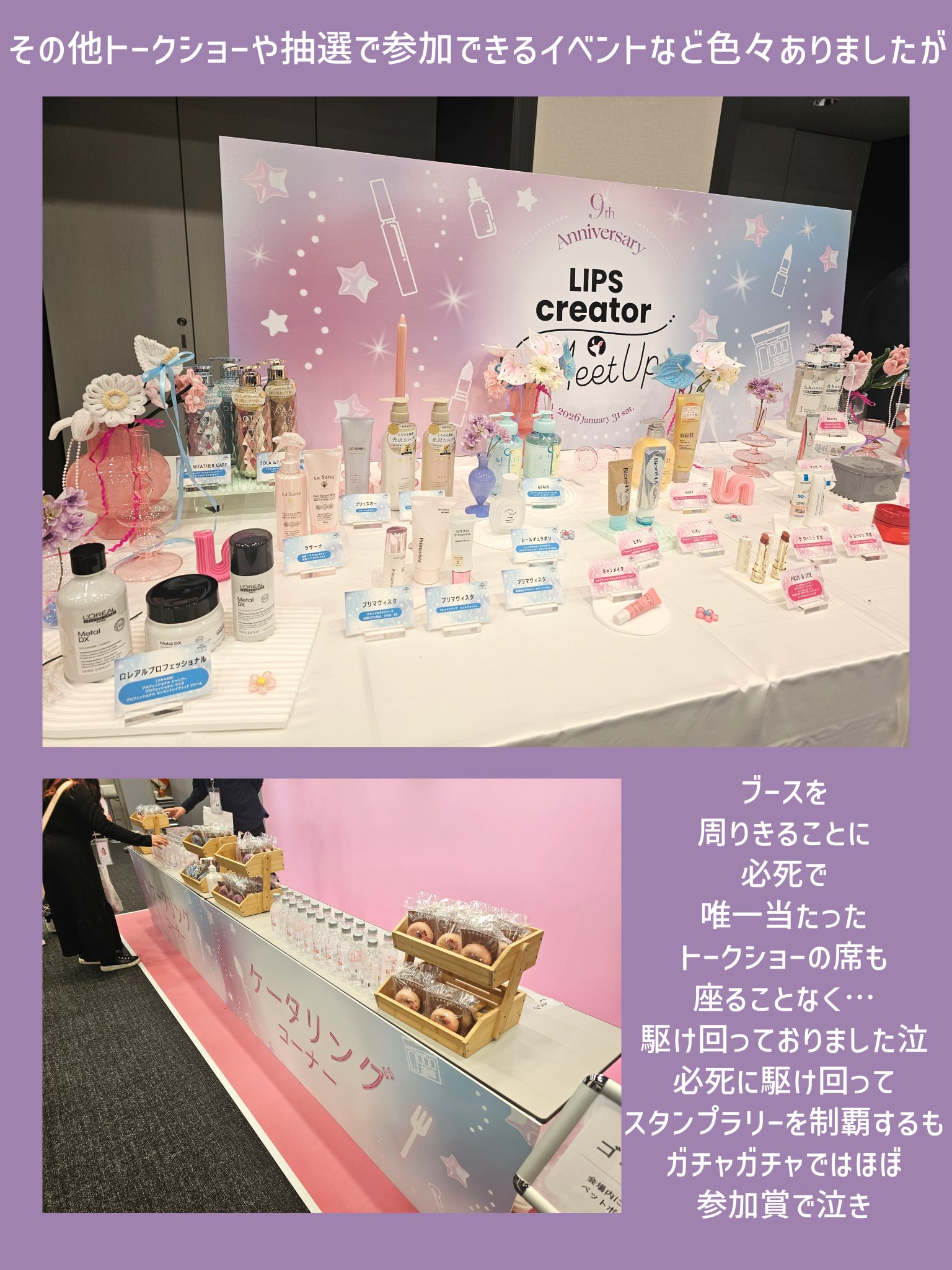 #LIPS9周年おめでとうLIPScreatorMeetsUPにお邪魔しました💫たくさんの企業さんのきれいなブースをお邪魔し、開発秘話や商品の特徴を教えていただきました♡私はトークショーの観覧も当選し、鹿の間さんを見てきました🦌LIPSの有名...