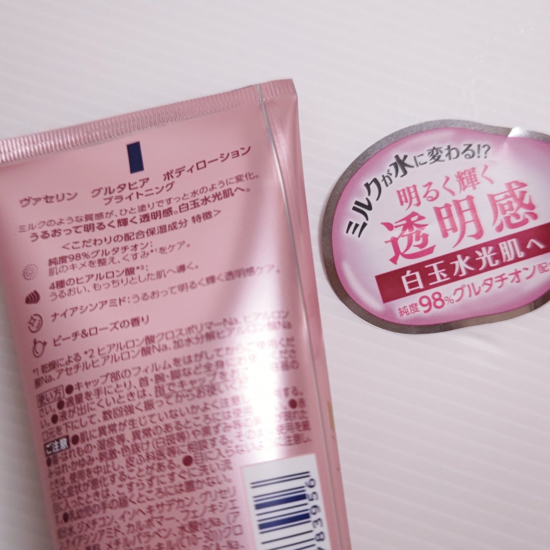 ヴァセリンGLUTA-HYA(グルタヒア)ボディローション ブライトニング海外の方ではすでに発売されてたみたいですね。日本では2月に発売予定。グルタチオン、ヒアルロン酸、ナイアシンアミドなど、こだわりの保湿成分配合。うるおって明るく輝...