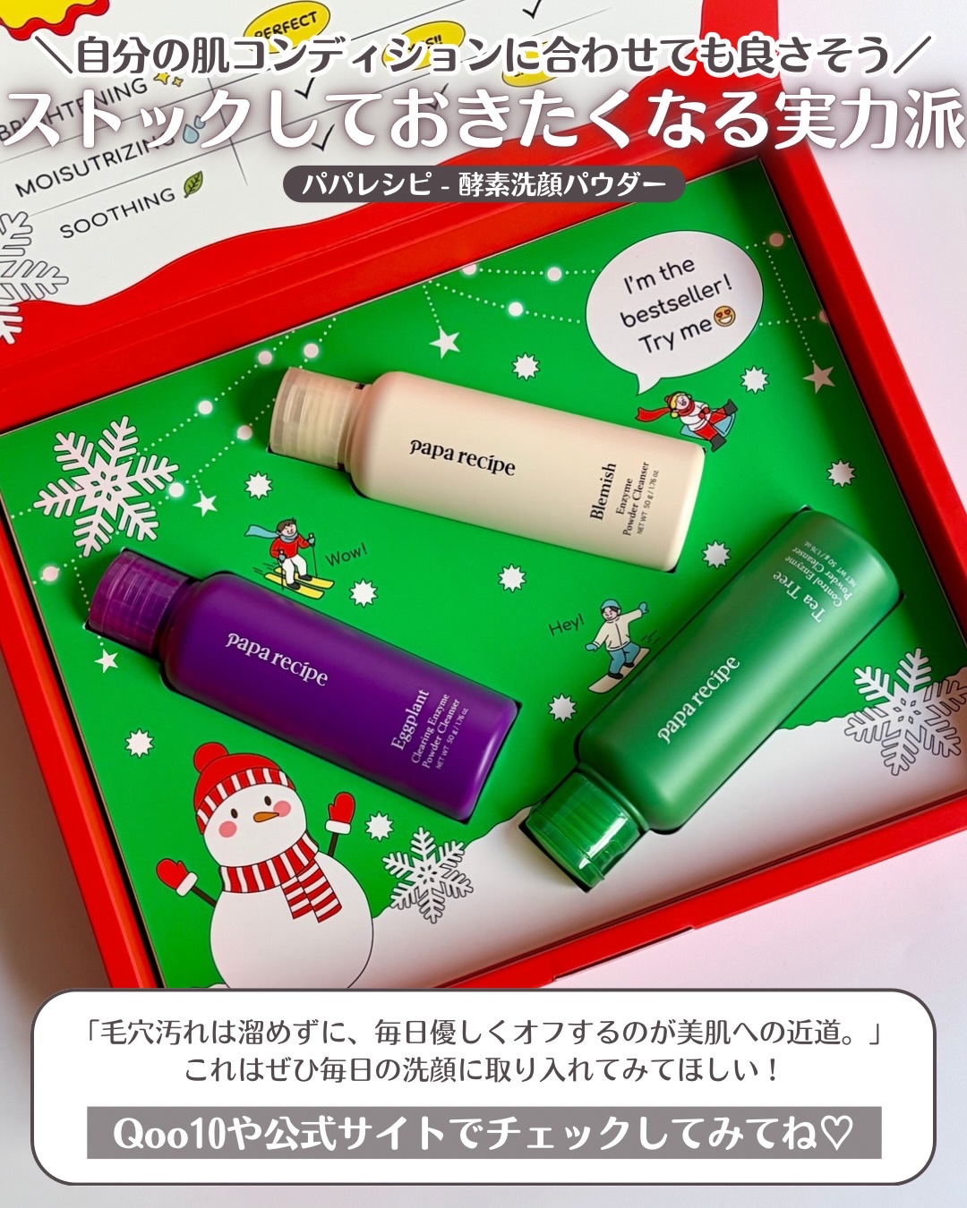☆PAPARECIPE酵素洗顔パウダー3種 POINT:1️⃣肌タイプに合わせて選べる3種の酵素洗顔2️⃣オリーブヤング販売ランキング1位にもなった韓国で今人気の洗顔3️⃣パパイン(酵素の粉)とPHA成分が毛穴の老廃物を優しく洗浄、クルミ殻パ...