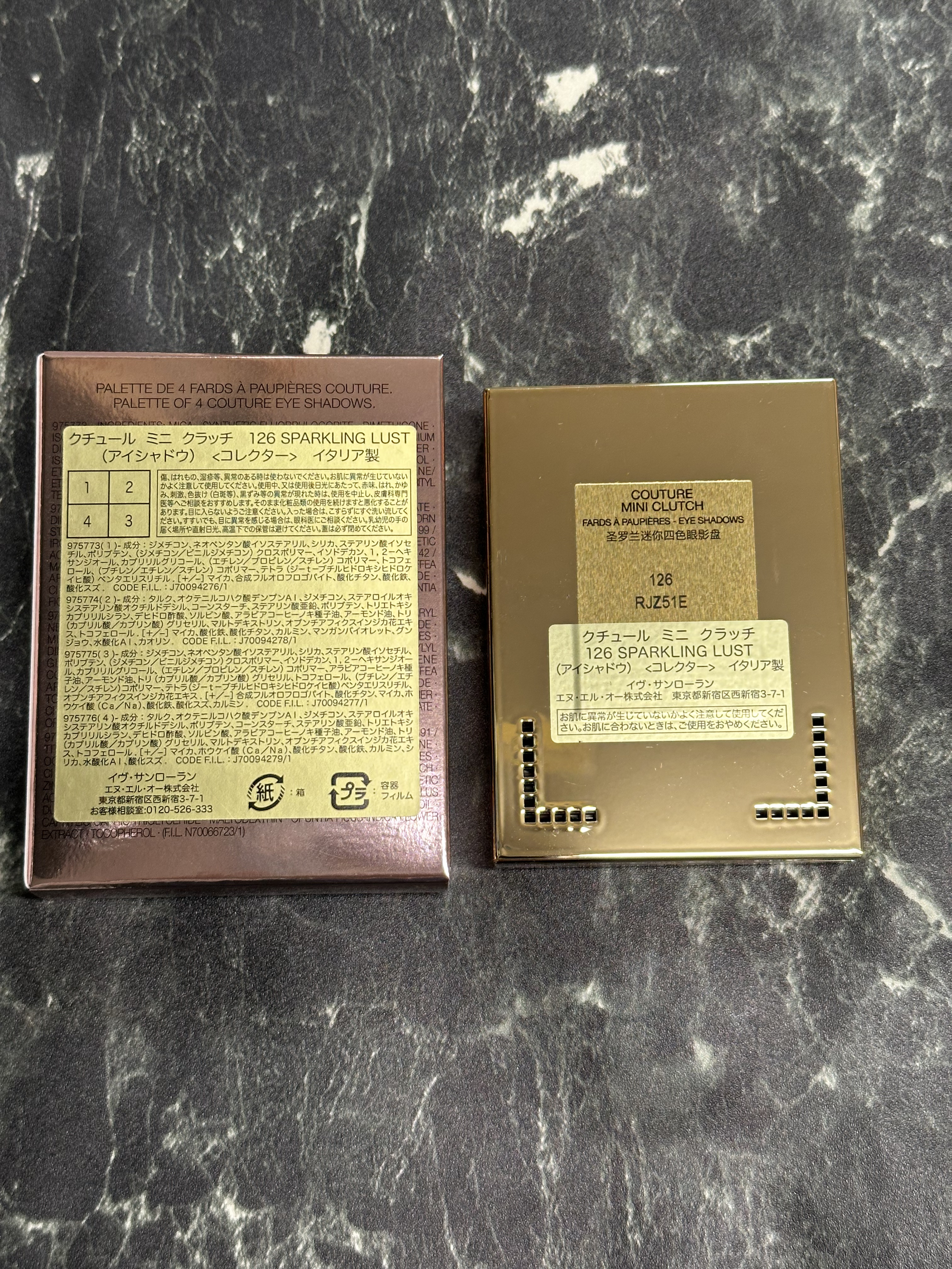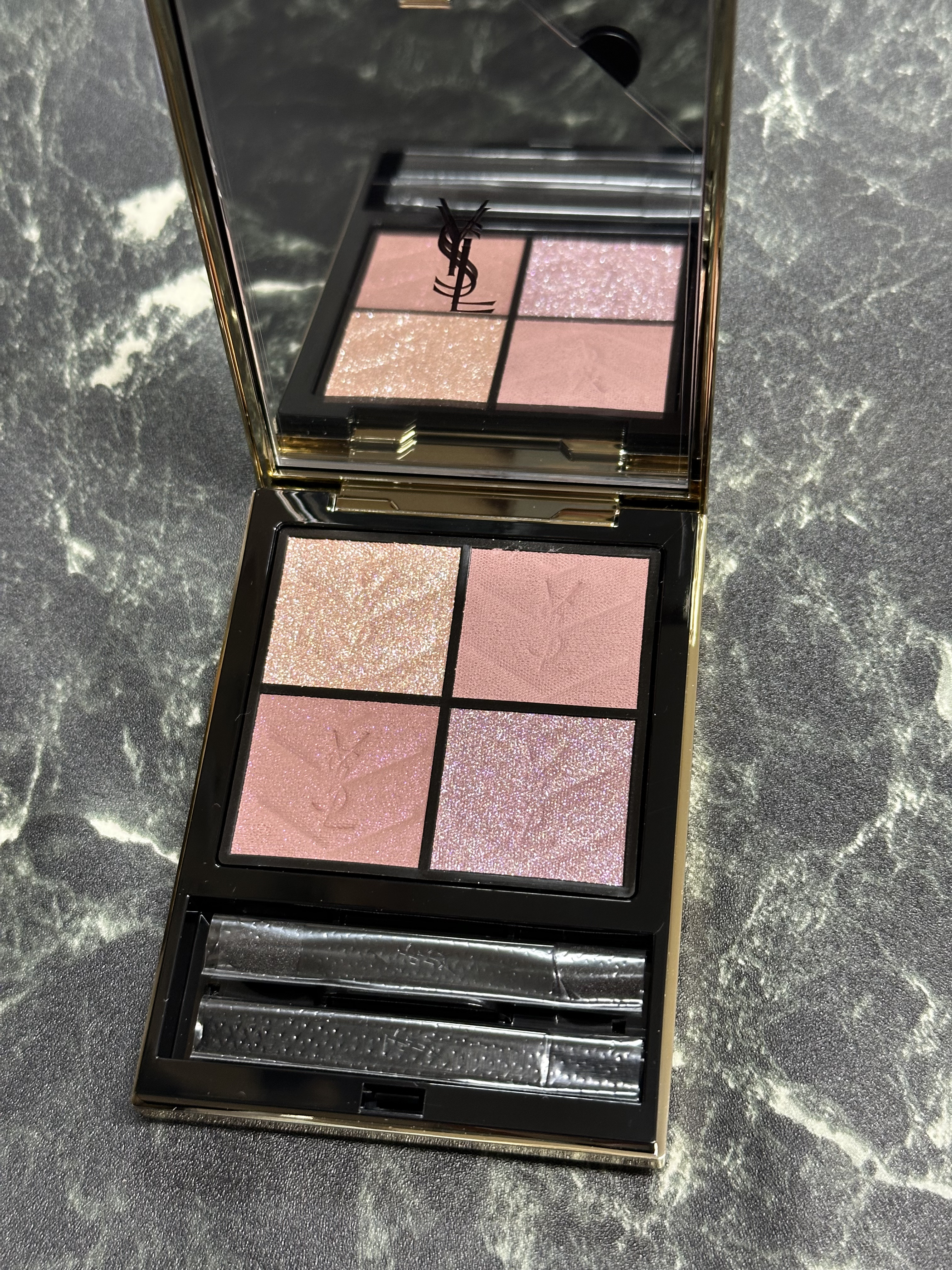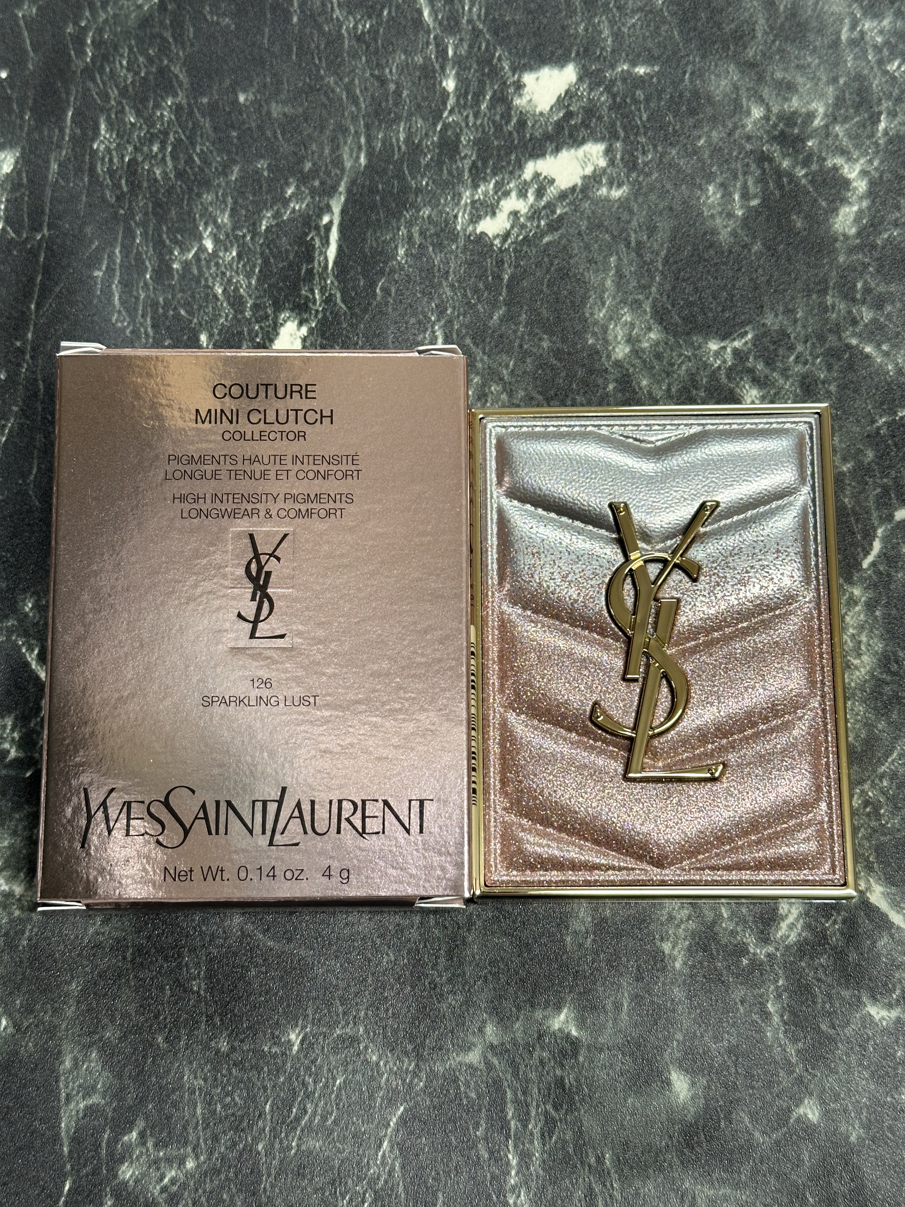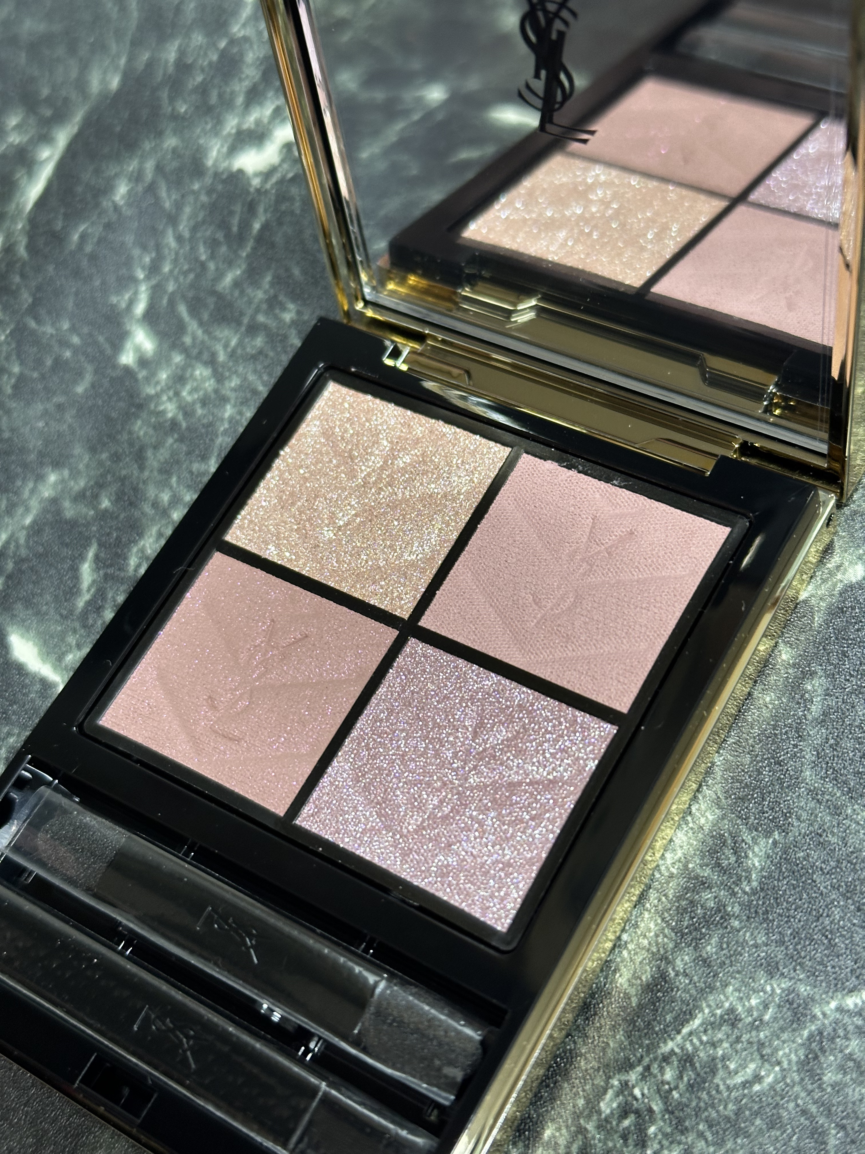 \激可愛😍❤️/YVESSAINTLAURENTBEAUTEクチュールミニクラッチNo.126スパークリングラスト<コレクター>¥10,890う〜ん❤️キラキラ😍💕締め色のブラウンにもピンクラメが🩷右上のマットも絶妙なくすみピンクで、粉質もサ...