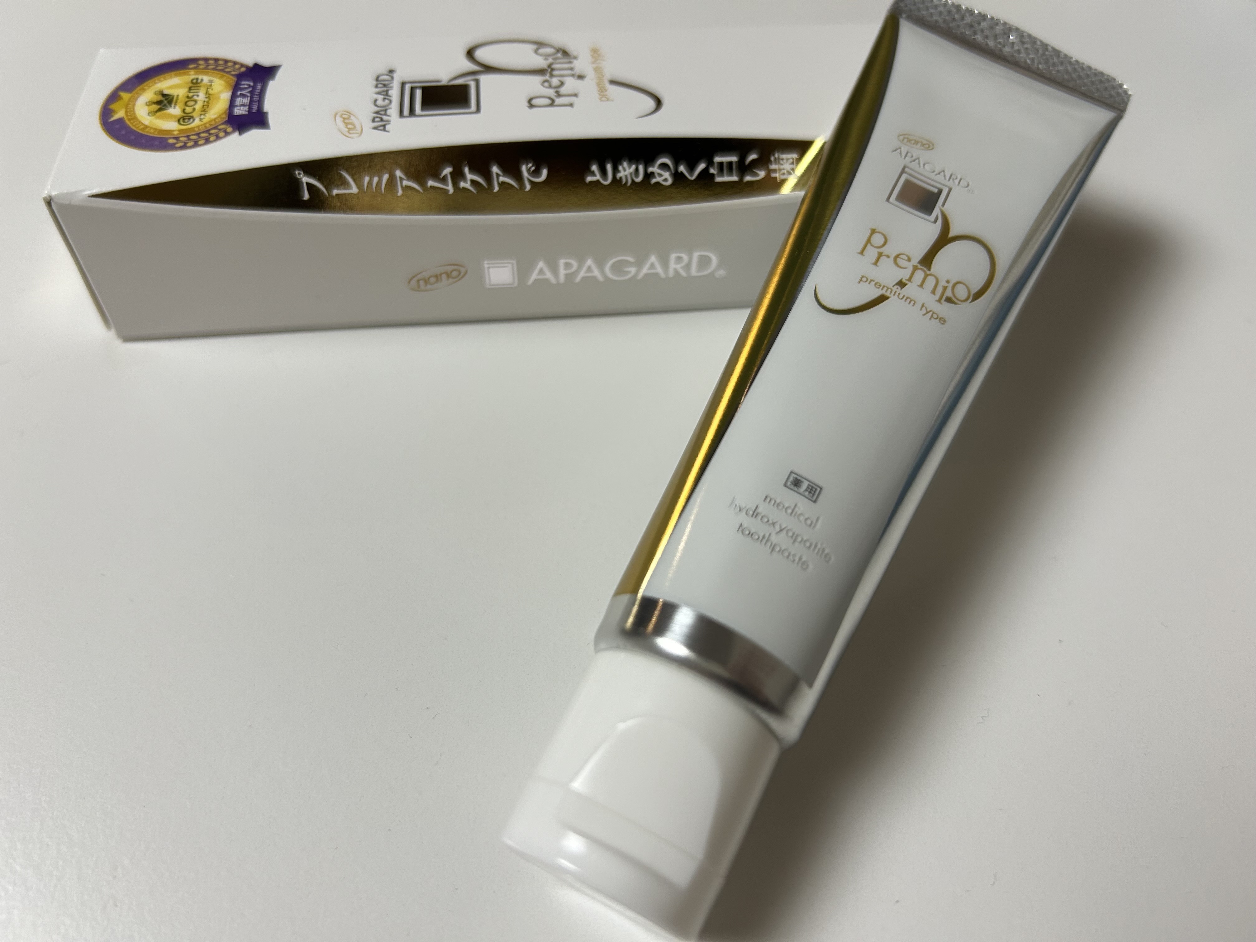 - 【医薬部外品】 独自成分「薬用ハイドロキシアパタイト」がエナメル質を整えてむし歯を予防。アパガードはエナメル質の健康を保つことで自然な白い歯に導く美白歯みがきブランド。アパガードプレミオは「薬用ハイドロキシアパタイト」を高配合(スタンダードタイプ比)。プレミアムケアでときめく白い歯に。 <ライトミント> ●サンギ独自の薬用成分ナノ粒子「薬用ハイドロキシアパタイト」を高配合したプレミアムタイプ。※Mプラス、スモーキン比 ●歯の再石灰化率、白色度もアップ。 ●歯垢を吸着除去し、歯のエナメル質の目に見えない傷を埋め、ミネラル欠損部(初期むし歯)を再石灰化するナノ<mHAP>の3つの働きで、むし歯を予防。 ●パール成分(加水分解コンキオリン液)配合。 <エクストラミント> ●強めのミントがお好みの方におススメ!ミント強めの「エクストラミント」フレーバー。 ●サンギ独自の薬用成分ナノ粒子「薬用ハイドロキシアパタイト」を高配合したプレミアムタイプ。※Mプラス、スモーキン比 ●歯垢を吸着除去、エナメル質表面の目に見えない傷を埋めてなめらかに、エナメル質から溶け出したミネラルを補給(再石灰化)する、という薬用ハイドロキシアパタイトの3つの作用でむし歯を予防。 ●パール成分(加水分解コンキオリン液)を追加したブライトニング処方