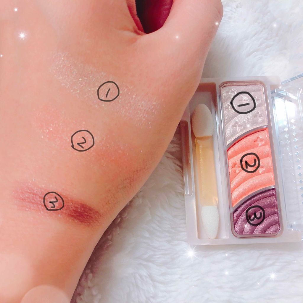 - 3色で簡単に明るく大きな目元に。 しっとり感触のアイシャドウ。 くすみを飛ばす明るさベース、ひとえ・奥二重の方でも幅広く塗れる肌なじみの良い中間色、 濃密高発色の締め色が目の輪郭を強調し大きな目元に。 微細パール配合でくすみを飛ばし、明るい目元へ。