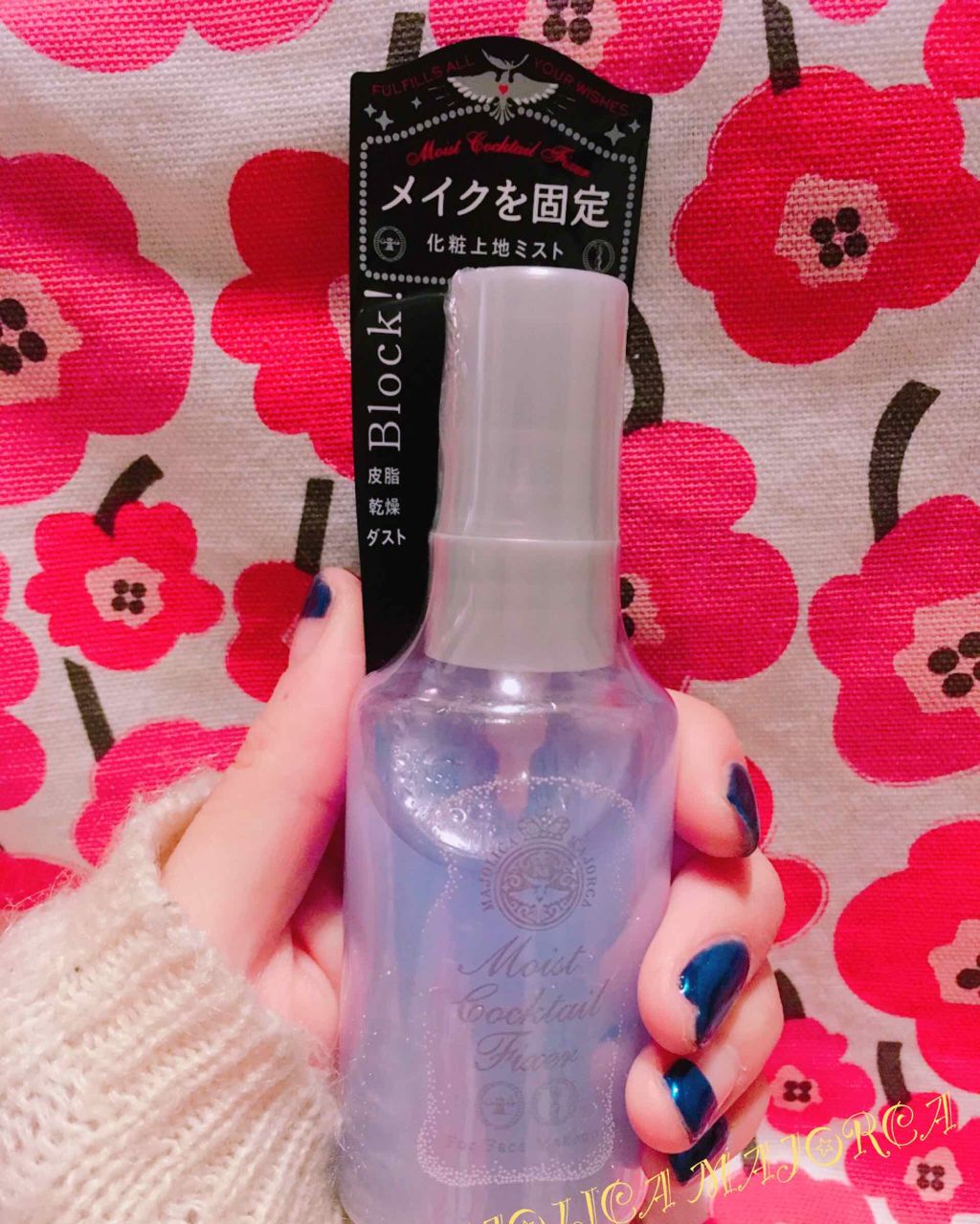 MAJOLICAMAJORCAモイストカクテルフィクサーEX【使った商品】モイストカクテルフィクサーEX【商品の特徴】¥1,320円(税込)60ml化粧水状おしろい(仕上げ用)【使用感】2層式で振るタイプのミストビシャってかかるが割と細かく馴...