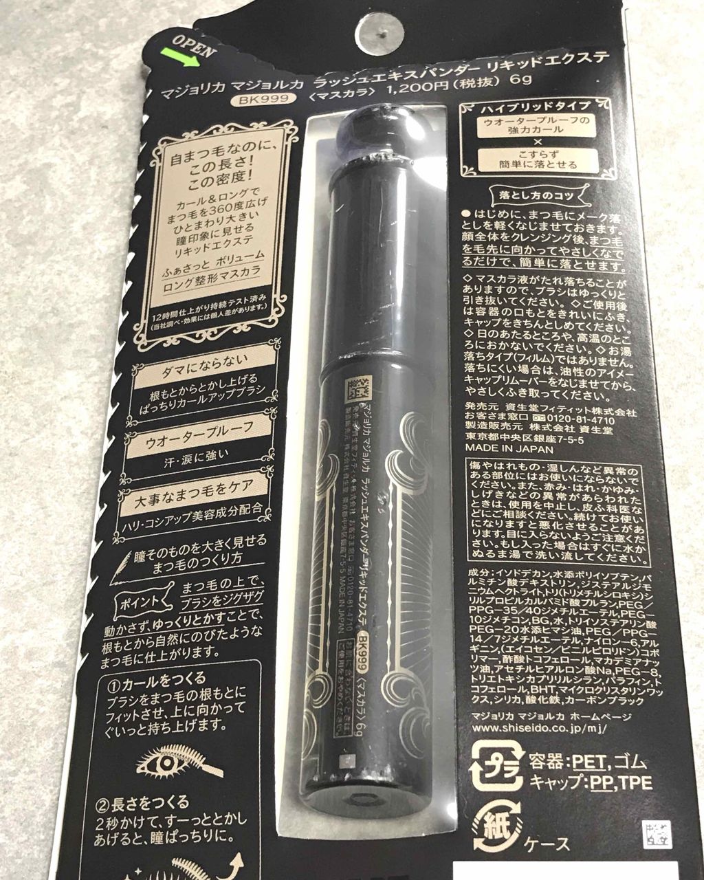 - まつ毛の根もとからひと塗りで密度をアップし、カール&ロング効果で目幅を広げ、ふさふさのボリュームのあるまつ毛で瞳そのものを大きく見せるマスカラ。 ウォータープルーフのカール効果がありながら、フィルムタイプのように簡単にオフできるハイブリッドタイプ。 お湯と洗顔料で簡単に落とせます。
