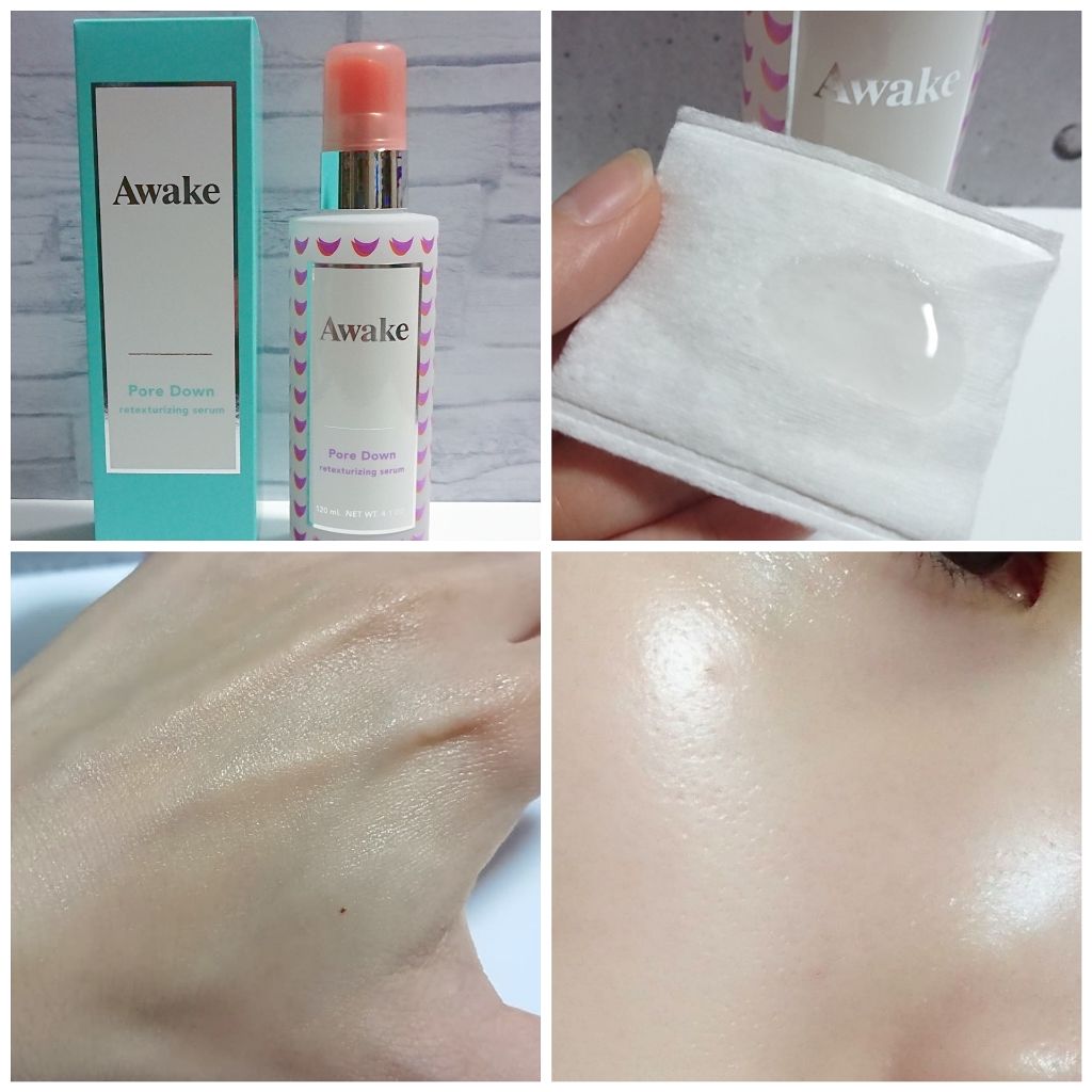 Awakeリテクスチュアライジングセラム120ml/4500円✓くすみ、ザラつき、毛穴の奥の皮脂をオフ✓スキンケアの浸透力をサポート✓毛穴の目立たない滑らかな素肌へ~使用感~導入美容液なので洗顔後コットンに含ませやさしく拭き取るように使用しま...
