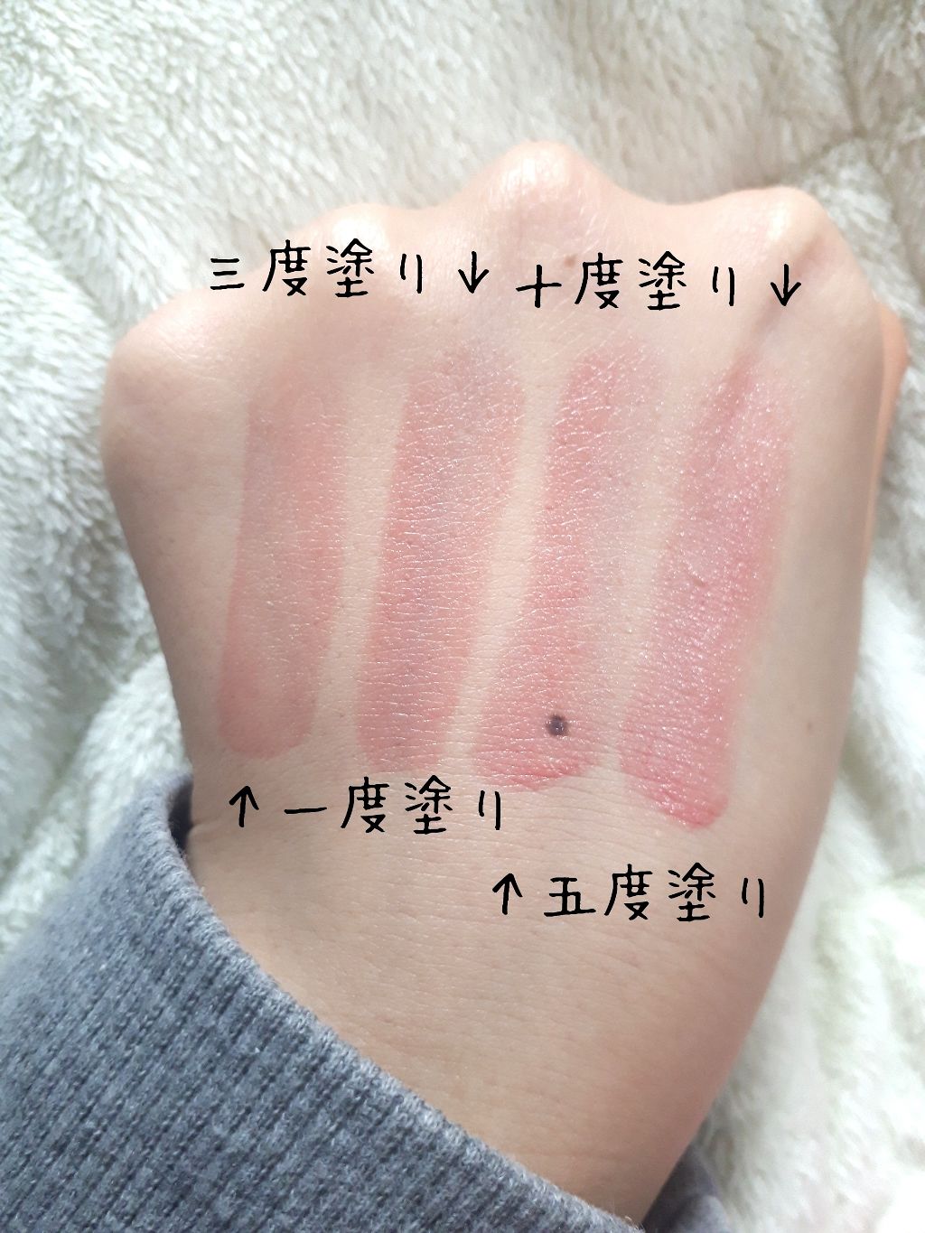 大人っぽいスモーキーカラー・するすると伸びの良いテクスチャ リップクリームなので伸びの良いテクスチャで、唇によく馴染みました🍑 スモーキーな色味も可愛く、ちゃんと発色します。