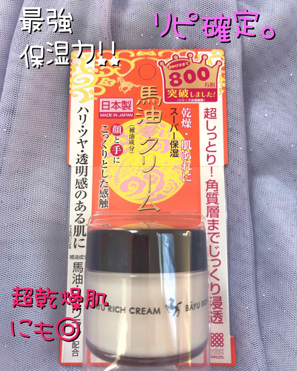- 手ごわい乾燥・肌荒れに超リッチな保湿力! 馬油とスクワラン(補油成分)配合、超リッチな保湿力で大人気のクリーム。 しっとりなのにべたつきが気にならない快適な使用感で、ハンドクリームとしても人気です。(乾燥がひどい肌に)
