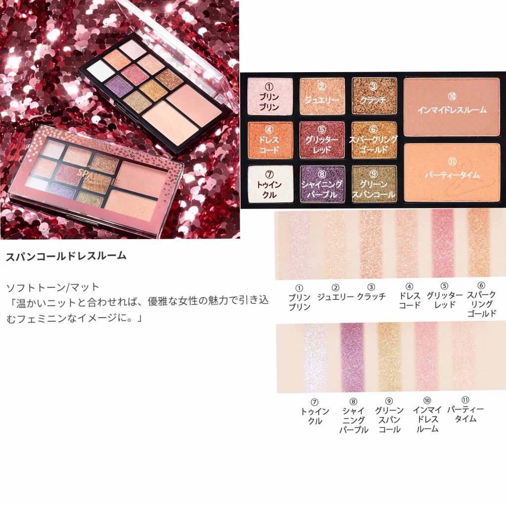 - ファッションもメイクで着飾る、多色で遊ぶまなざしファッションスタイルに合わせたムードを創り出す9色のアイシャドウと2色のチーク&ハイライトカラーが揃ったスマートなマルチパレット。 ◆心ファッショントレンドにインスパイアされた多色パレット 毎日のファッションを楽しむように、トレンドを押さえた多色パレットでその日の気分やシーンに合わせてメイクアッププレイ! ◆一つで決まるカラースタイリング ファッションスタイルに合わせたムードを創り出す9色のアイカラーと2色のチーク&ハイライトカラーが揃ったスマートなマルチパレット。 個性を引き出すビビッドな色合い、落ち着いた深みのあるヌーディーな色合い、キラキラと存在感のあるグリッターの色合いまで、お好みのスタイリングを決めることができます。 ◆スタイリング引き立つ異なる質感 肌に溶け込むようなしっとり滑らかテクスチャーが重ねるほどに個性光るトレンドメイクに仕上げます。