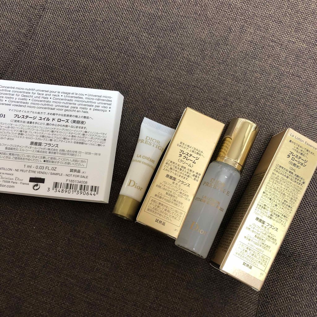 良い香り🌹 サンプルを使ってみました 香りだけでも幸せ😀 気分も上がります クリームはしっとりツヤ肌 とっても良い気分になります うっとり😍 今プレステージはBBしか使ってないのでサンプルでもセットで使えて嬉しいです☺️