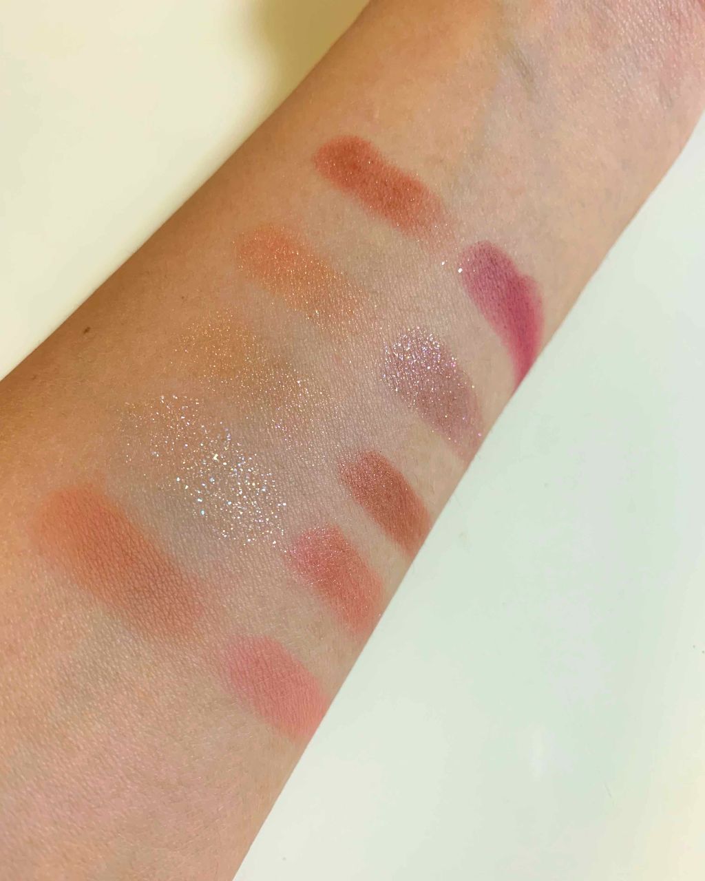 ディオールバックステージのフェイスパウダーのスウォッチ紹介します🤩🌟💄ディオールバックステージフェイスグロウパレット左上から横にスウォッチしてます🧡上はハイライトで下がチークだそうですが、右下のブラウンは私には色が濃すぎてチークとしては使えま...