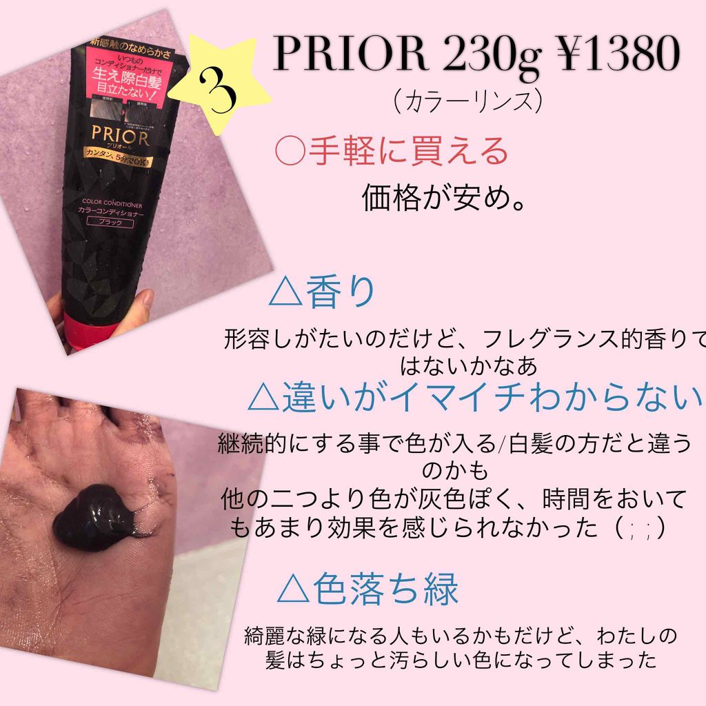 はじめまして、全然メイク関係ないけど、初登校はこれが良かった笑⭐︎記載されている本来の使用方法と異なり、・乾燥した髪に塗布、30分〜おく・白髪のない髪(目安カラーレベル9〜12)ということをしています。また、個人差があるということと、相対評価...