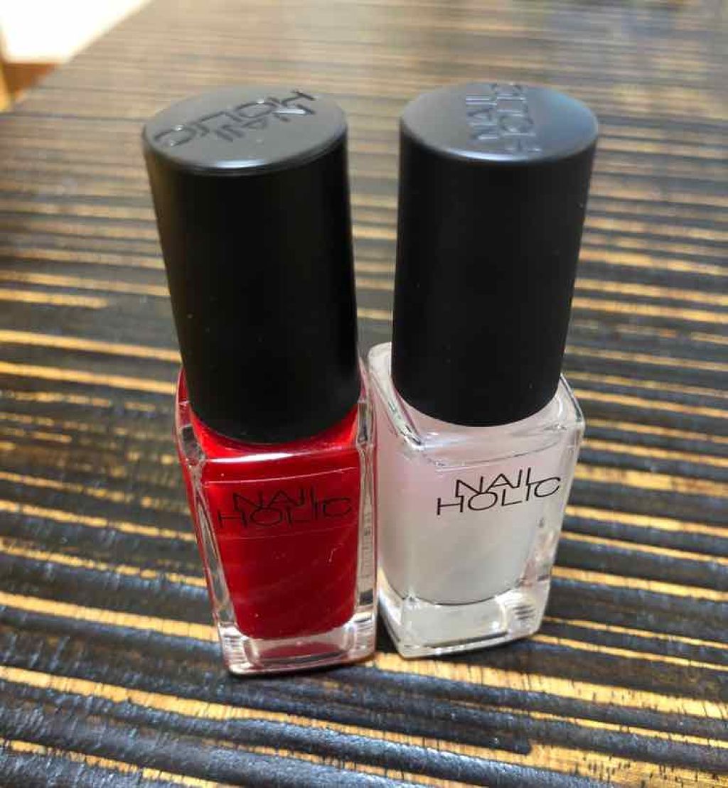 ネイルホリック赤色とマットネイル💗赤は何番かは忘れたけど、結構鮮やかな赤です(笑)わかりましたらまた書き込みます!マットネイルは、私はネイルのツルツルした感じが嫌いだから買ってみたのですが、触り心地がさらさらしていて大満足です!!!見た目的に...