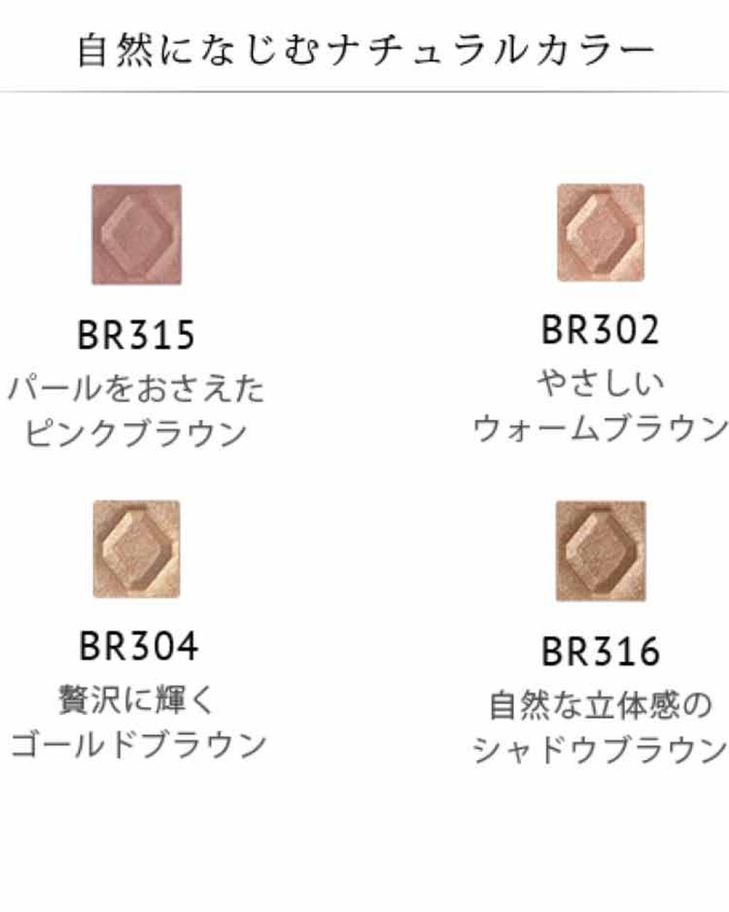 - ダイヤを砕いたダイヤモンドパウダー配合。つけたてのピュアな色・ツヤ・輝きが続くアイカラー。とけこむように肌になじみ、厚塗り感がないのに上品な輝き。透明感があり、抜け感のある目もとに仕上がります。
