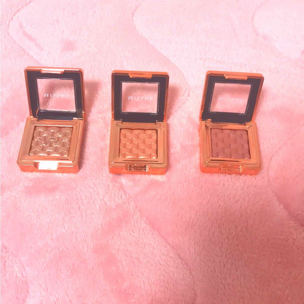 MISSHAのモダンシャドウ[イタルプリズム]を購入しました。左から3号クラムスーツ12号ピッチスムージー14号ローズポムポムです。とても、キラキラ.゚+.(´∀`*).+゚.していて、キレイです。単色でも使えるのでありがたいです。色味も沢山...