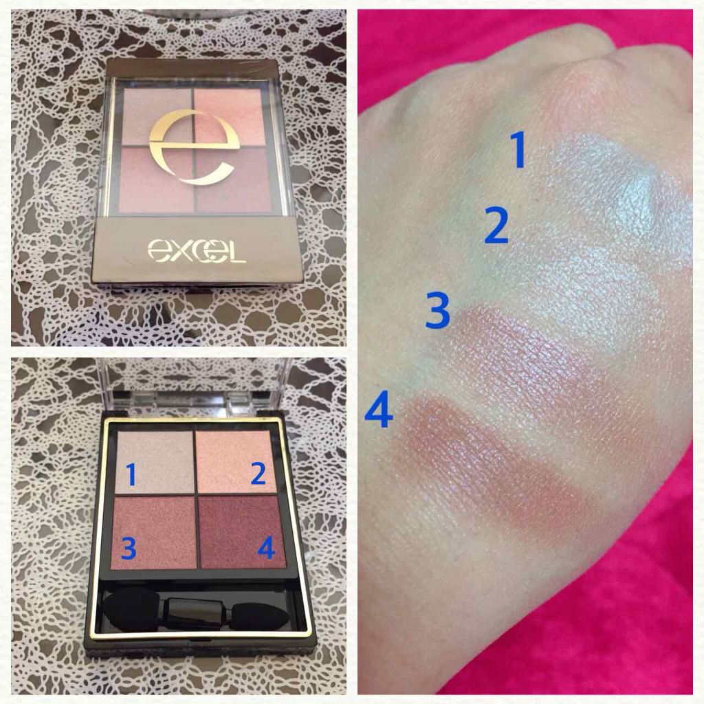 - 1.重ねてもくすまないクリアな発色。ナチュラルに溶け合う絶妙4カラー。 ツヤタイプ(左上・左下カラー):アイホール全体にぼかしたり、目尻へのポイント使いも。 ラメタイプ(右上カラー):アイホール中心や下まぶたにきらめきのアクセント。 マットタイプ(右下カラー):単色で陰影を付けたり、ツヤタイプと重ねてニュアンスをプラス。 2.うっとりするほどリッチな質感で粉飛びしないのに、軽いタッチで伸びて重ねやすいテクスチャー。 3.スクワラン(保湿)配合で目元の乾燥を防ぎます。 [PERFORMANCE] 色と質感の重ね着を楽しむ、ファッション感覚アイシャドウパレット [DESIGN] ・まぶたにひっかからない、なめらかな上質チップ ・薄型コンパクトだからポーチの中でかさばらない [QUALITY] 1.重ねてもくすまないクリアな発色 ナチュラルに溶け合う絶妙4カラー 2.パールの重ね技でまぶたに極上のツヤ感 微細多色 カラーパール 銀コーティング ガラスパール* excel GOLD-MIX処方(金パール配合)* (*右上のシャイニーカラーのみ) 3.うっとりするほどリッチな質感で粉飛び知らず!なのに、軽いタッチで伸びて重ねやすい 4.スクワラン(保湿)配合で目元の乾燥を防ぐ