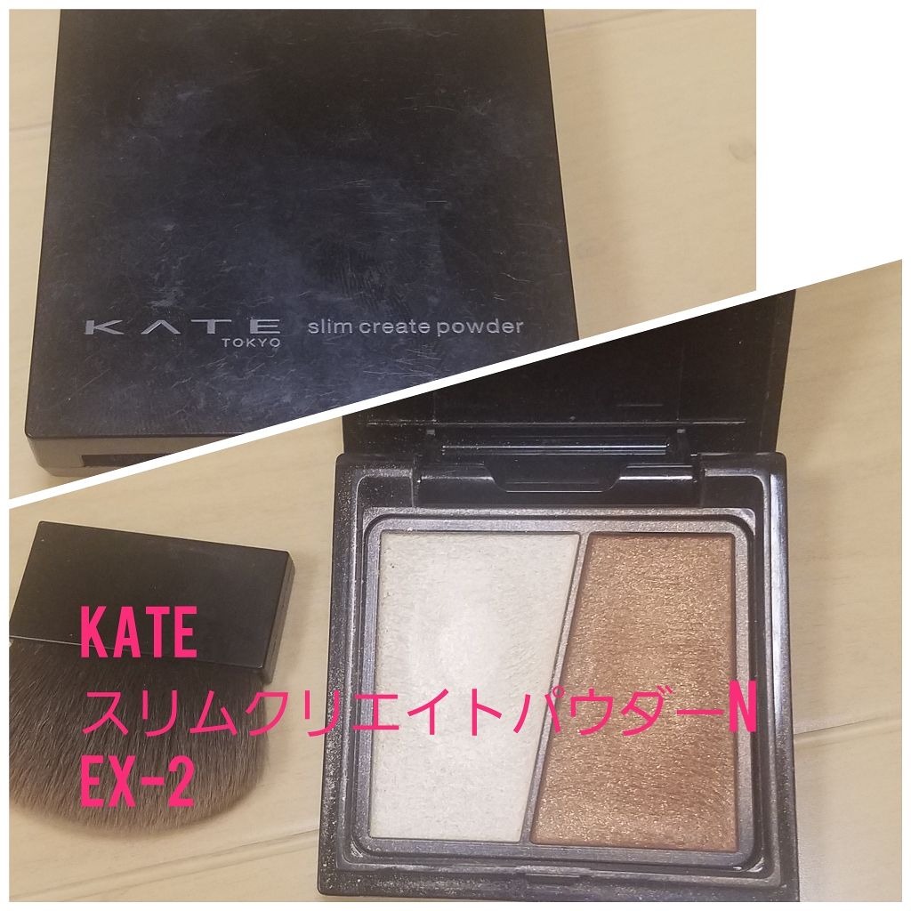 KATEスリムクリエイトパウダーNのEX-2番グロウタイプのハイライトとシェーディングです。飛び散りにくく、つけ心地のよいパウダーでハイライトはベージュ系の色味なので肌なじみも良くナチュラルに鼻を高く見せてくれます。 シェーディングもしっかり...