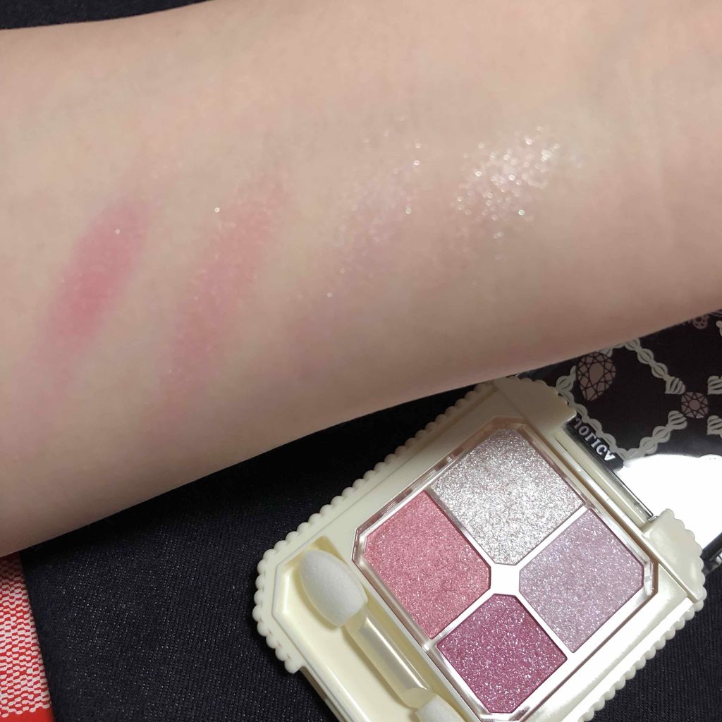 - 輝き感の異なる4色のグラデーション。ちりばめられたクリアな大小パールが角度によって驚くほど輝き、まばたきなどで動くたびにキラキラ。まぶたが多面体の宝石のようなきらめきを放ちます。