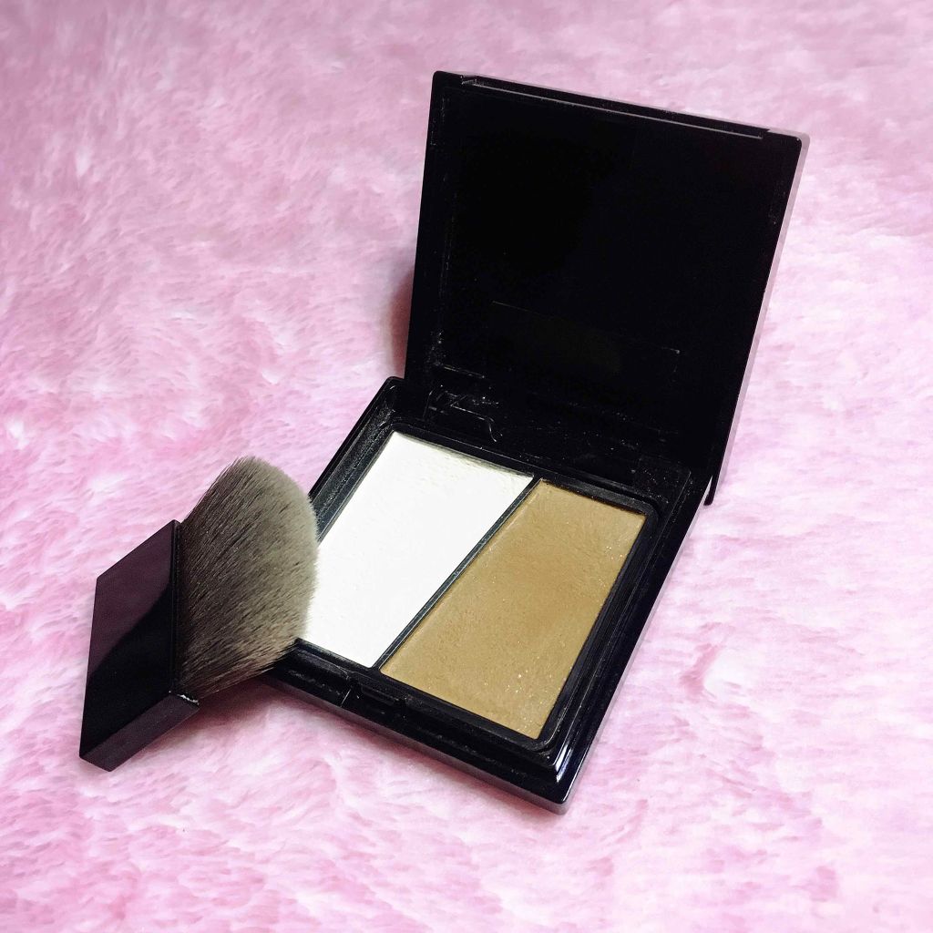 - シェーディングとハイライトが1つになったパウダーです。汗に強く、くずれにくいフッ素処理パウダーで立体小顔へ導きます。ブラシつき。