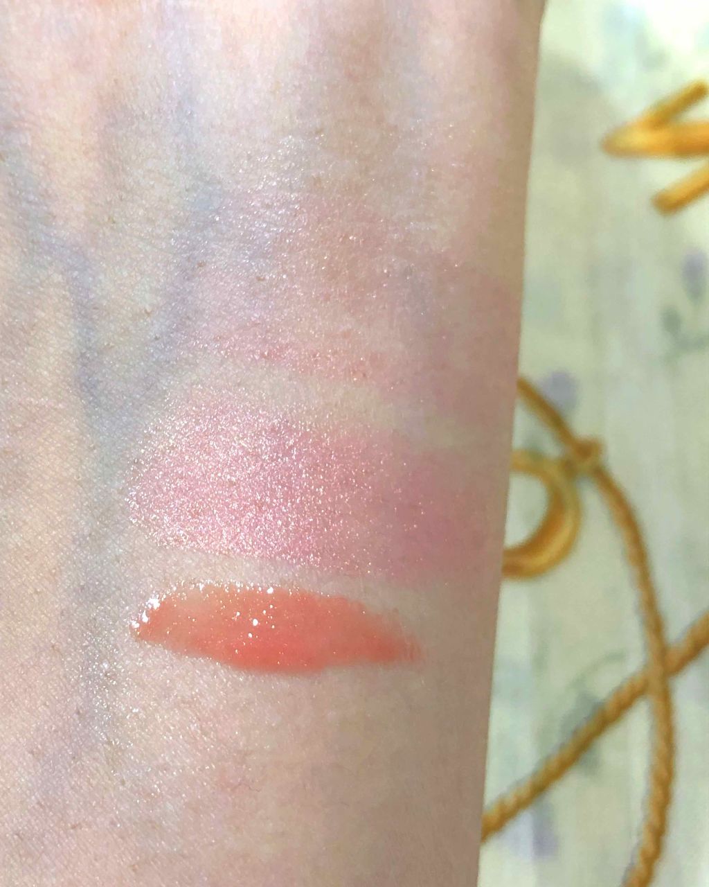 マキシマイザーの保湿感は言わずもがなバッチリで、プルプル感、スースー感大好き 012ローズウッドがはちゃめちゃに可愛い!!! ピンクベージュにゴールドのラメがチラチラと入ってる 多幸感抜群だし、バブみもある👶🏻💕 可愛い仕上がりになる