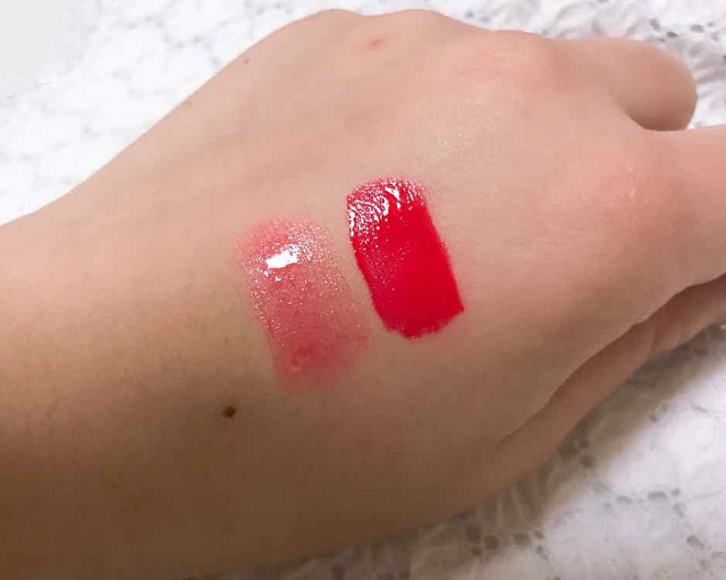 2枚目(結構使ったから短い)kailijumei013枚目(ほぼ新品)kailijumeiフラワーティントリップNオイルイン(PK)PK06色🎨どっちも2,3分で結構濃い色のピンクに香り🌼何の匂いかわからないけど甘い匂い着け心地💄保湿効果なし...