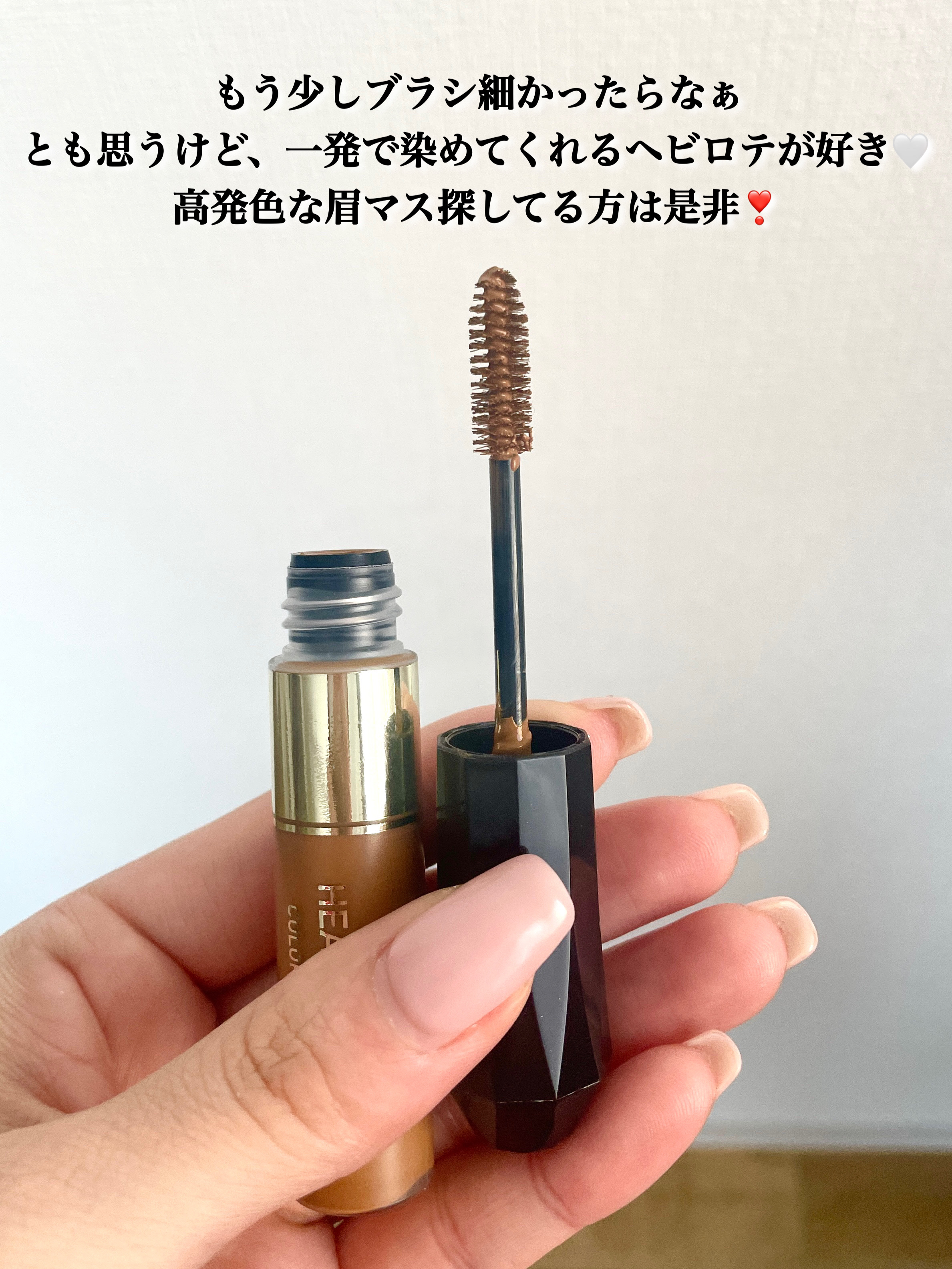 このアイテムは今まで使った眉マスカラの中でもブラシの形状が1番好みかも💕 極細ブラシだと一本一本に塗れて地肌に着きにくいけど、眉毛なら毛量が多いと眉毛全体に色をのせるのに何度かブラシを動かさないといけない 太めのブラシだと眉毛全体に一気に色をのせられるけど、地肌につきやすくてベタっとした仕上がりになりやすい そんな極細ブラシと太めのブラシのいいところだけを取ったようなちょうどいいサイズ感です🙆♀️ 私が購入したのは05 ライトブラウン赤みのあるカラーですが、そこまで強すぎないので使いやすい🤎 ヘビーローテーションは色展開が豊富で常にトレンドに合わせた新色が発売してくれるので垢抜けたいなら絶対に持っておくべき❗️ 大人気なのも納得の優秀アイテムでした