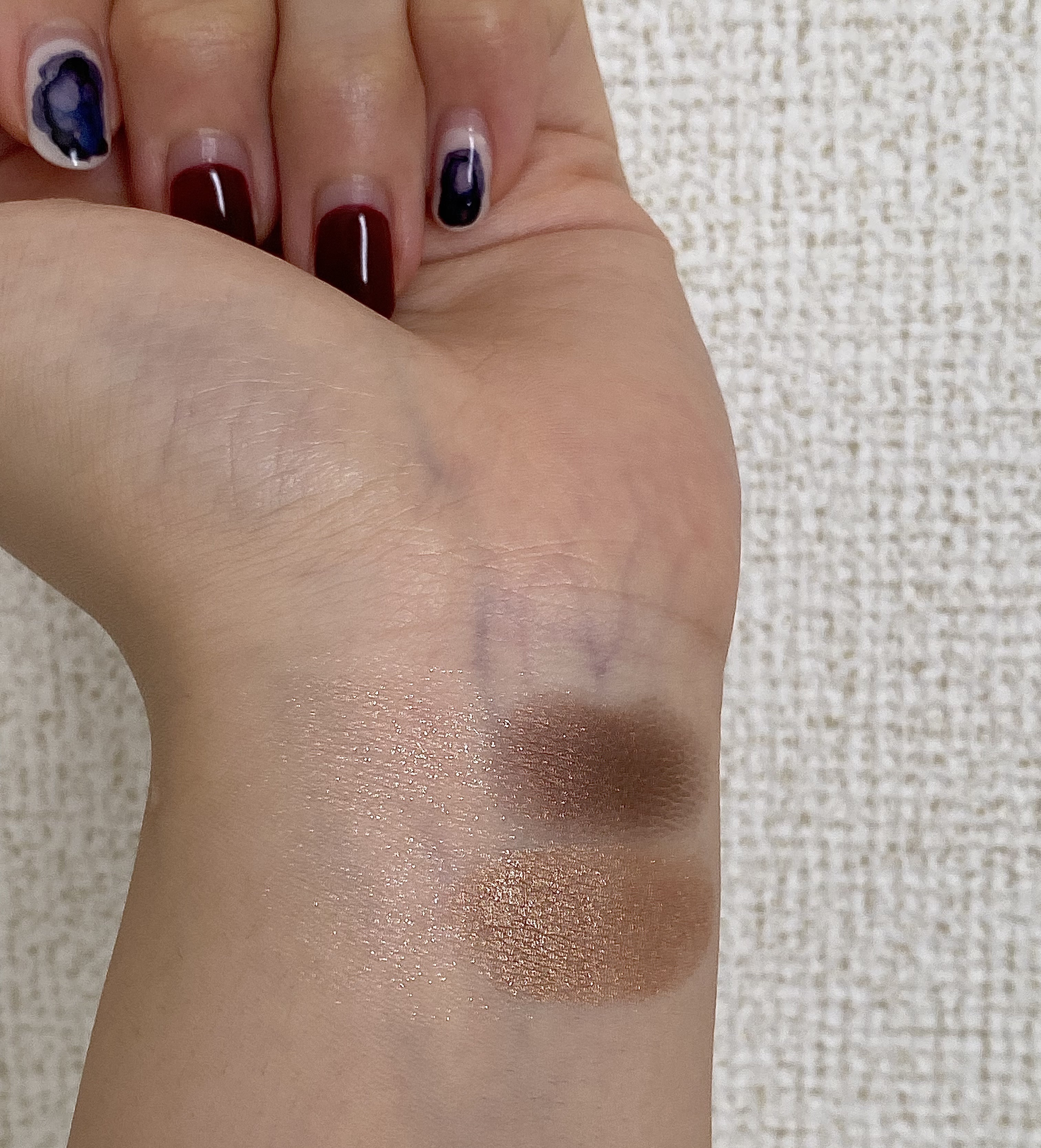 #キャンメイク#パーフェクトブラウンアイズ04#スウィートブラウンこちらの物が廃盤になるとLIPSの投稿で見かけ、可愛いなと思ったので昨日イオンのキャンメイクで購入してきました😊✽.。.:*・゚✽.。.:*・゚✽.。.:*・゚✽.。.:*・゚✽.。.#発色(手に乗せてみた感じ)▷▶︎右側のブラウン系のシャドウしかあまり発色されませんでした😭私が一番気になったポイントは左下の#アイシャドウがクリームタイプなのですが、パレットを指で擦ってもあまり指に付いてくれない😑#クリームタイプだから油分とかもあると思うので持ちもあまり良くなさそうという印象でした😶ですが、#就活メイク、#ナチュラルメイクをする際には丁度いいのではないかと思いました❣️✽.。.:*・゚✽.。.:*・゚✽.。.:*・゚✽.。.:*・゚✽.。.発色が濃いものが好きな私にとっては少し物足りなく感じてしまいました😭ですが、逆を言えば色味を調節しやすいと言うことだと思います🙋あくまでも個人の意見だと思って頂ければ幸いです🙏またちゃんと使ってみて評価をしてみたいと思います🙇♀️