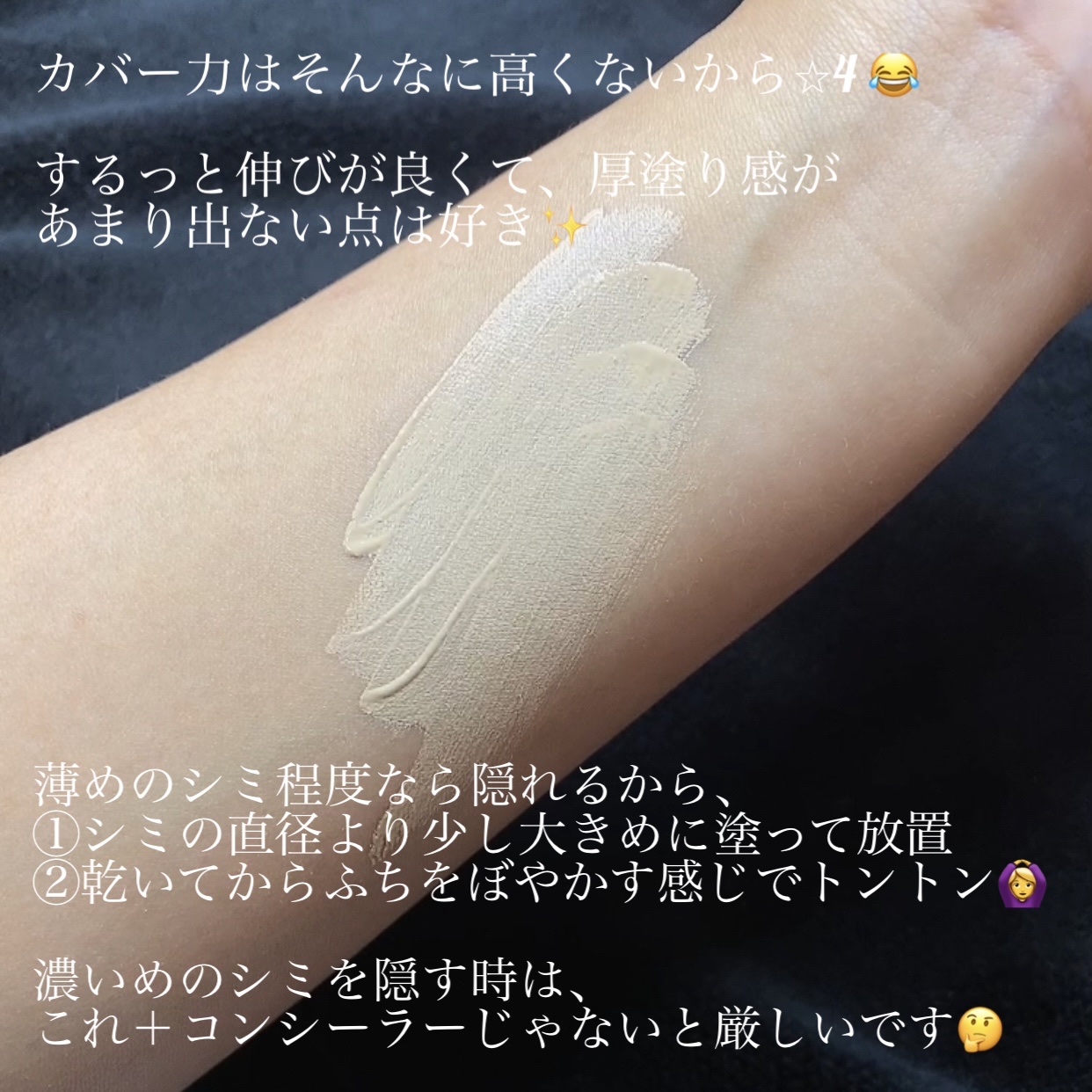 ベースなので下地としても💯✨ カバー力💪めちゃくちゃあります‼️ 部分使いでも全顔に広げてあとはパウダーで時短コスメとしても良き🙆♀️ですから是非✨ 保湿系 乾燥肌 クマ隠し ツヤタイプではなくてマットタイプの方が伝えるにふさわしいかな?