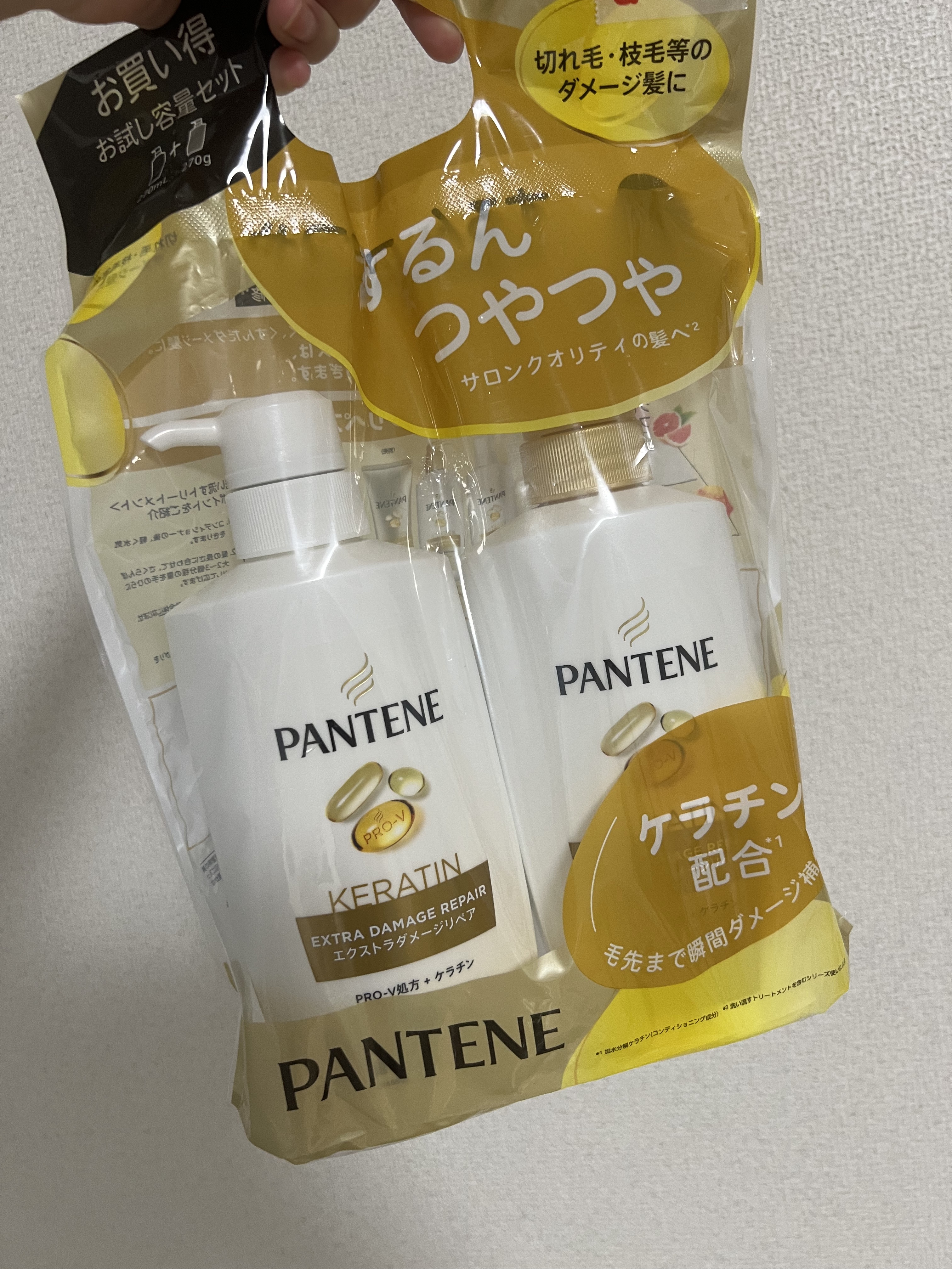 いつもリピって愛用!【使った商品】パンテーン エクストラダメージケアシャンプー/トリートメントinコンディショナー【商品の特徴】切れ毛、枝毛等のダメージが気になる方用のシャンプー/コンディショナーライン使いで、傷んだ毛先までダメージを忘れた髪...