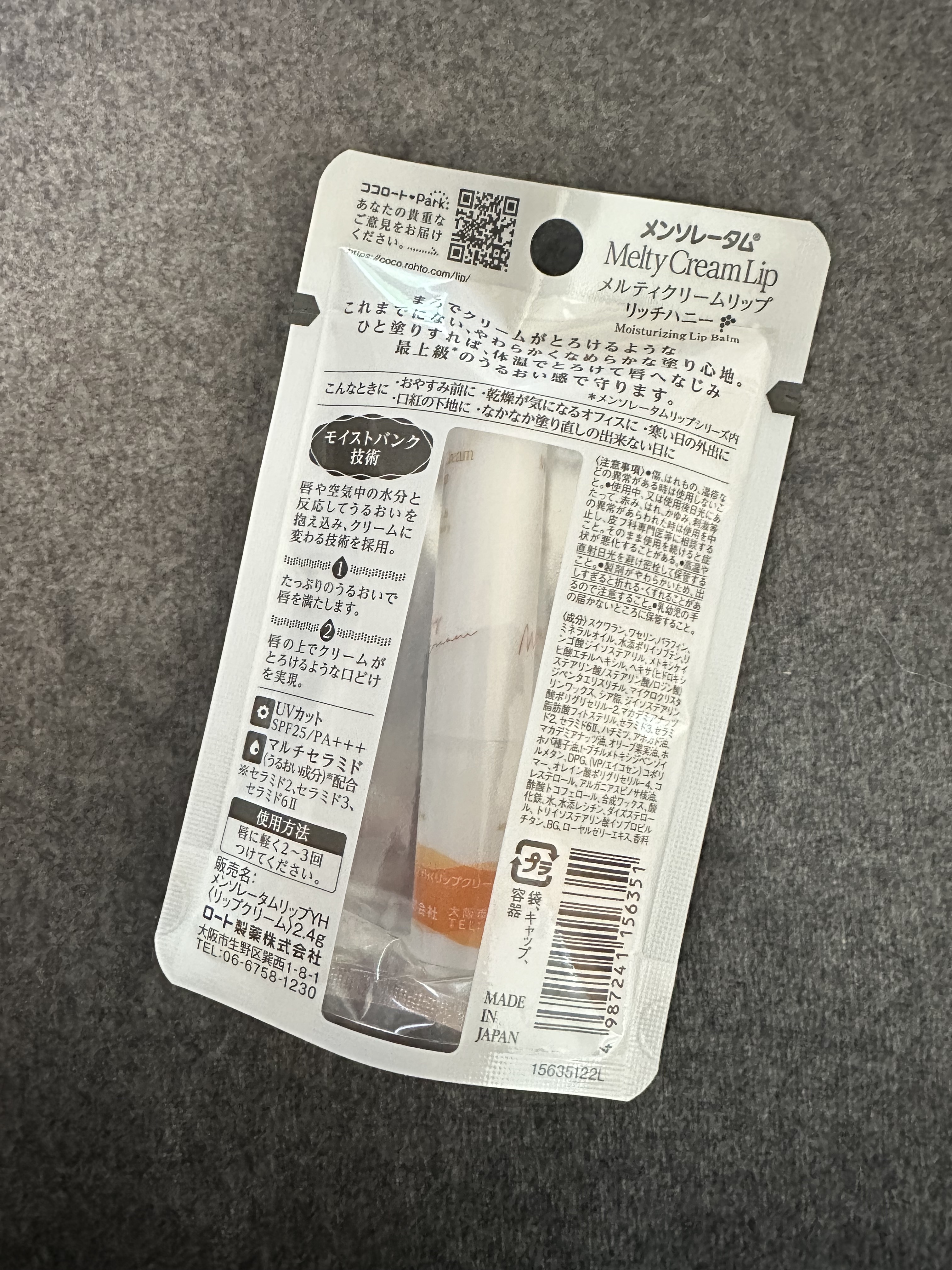 最近バタバタしてなかなか書けなくてやっと書けました🥺今回仕事用に保湿リップないかなぁと思ってたら見つけた品物です(*´︶`)✩.*˚メンソレータムメルティクリームリップリッチハニー✩.*˚なんかさパケからめちゃくちゃ豪華そうだよねꉂ😂w職場が清潔で清楚感のある化粧しか出来なくて…色無しのを探してたところ目に付いたやつ(>ᴗ<)LIPSチェックしたらなかなか高評価だったし、20日までに使わなきゃ行けない500円券があったのでそれと30円くらい出したら買えました☺️試しに塗ってみたらほんのりはちみつの香りでベタベタしないし塗りやすかったです🍯このお値段でこのクオリティはコスパいい気がするんだけど…体温で溶けるみたいで、結構溶けやすい模様…🤔職場…暖房大丈夫かなって心配しつつ使ってみようと思います(*´꒳`*)/質感とか塗った感じはめちゃくちゃ好きでした🫶#メンソレータム#プチプラ#リップクリーム#仕事用#リップ下地