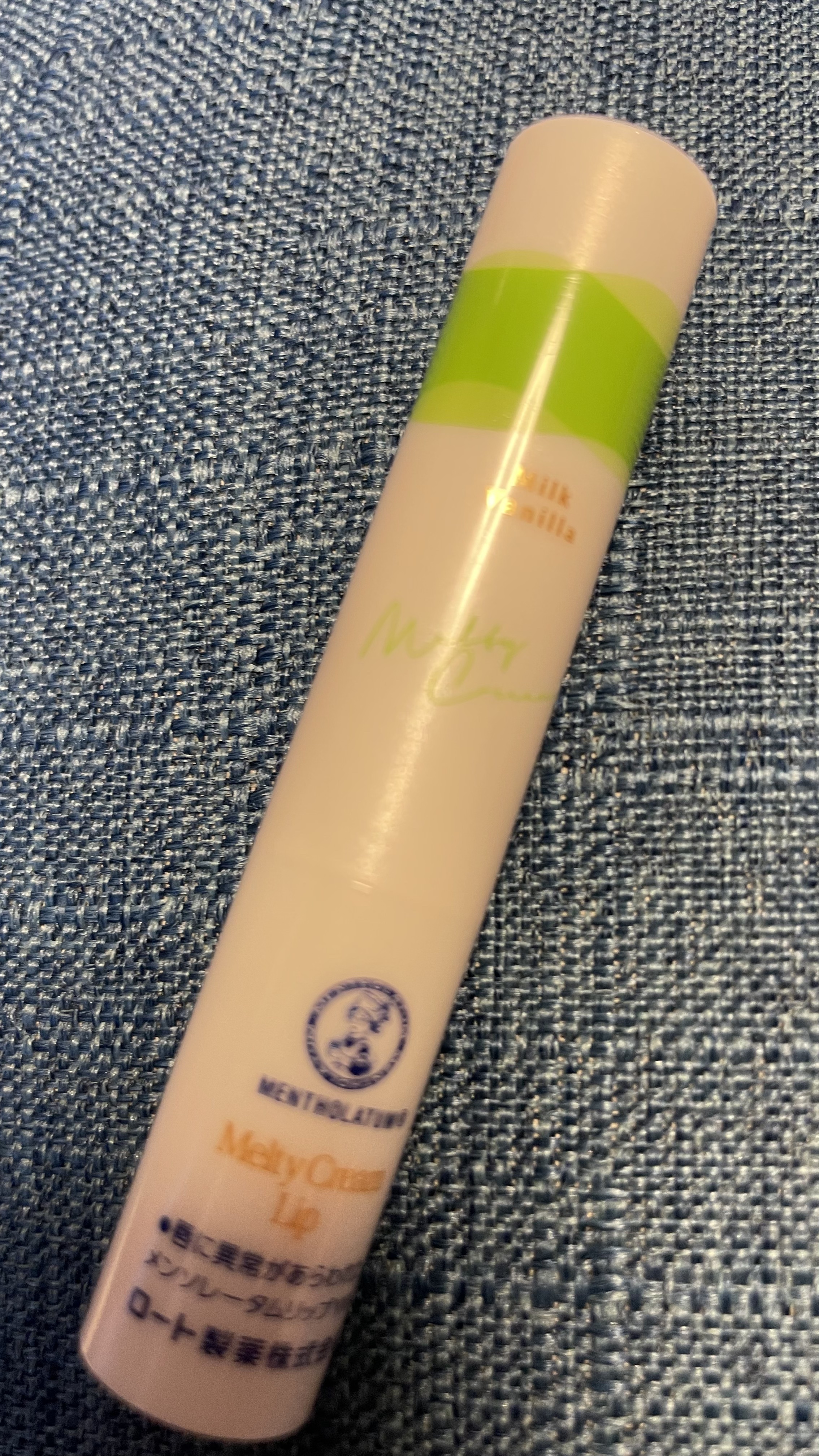 #メルティクリームリップメンソレータムミルクバニラ¥495濃いめのバニラの香りでとても癒されます。硬めのテクスチャなので暖房の中でも溶けずに塗れます。寝る前に塗ると朝まで保湿されてる感じがあるので保湿力も高めだと思います。リピートか、他の香りも買ってみようと思いました。