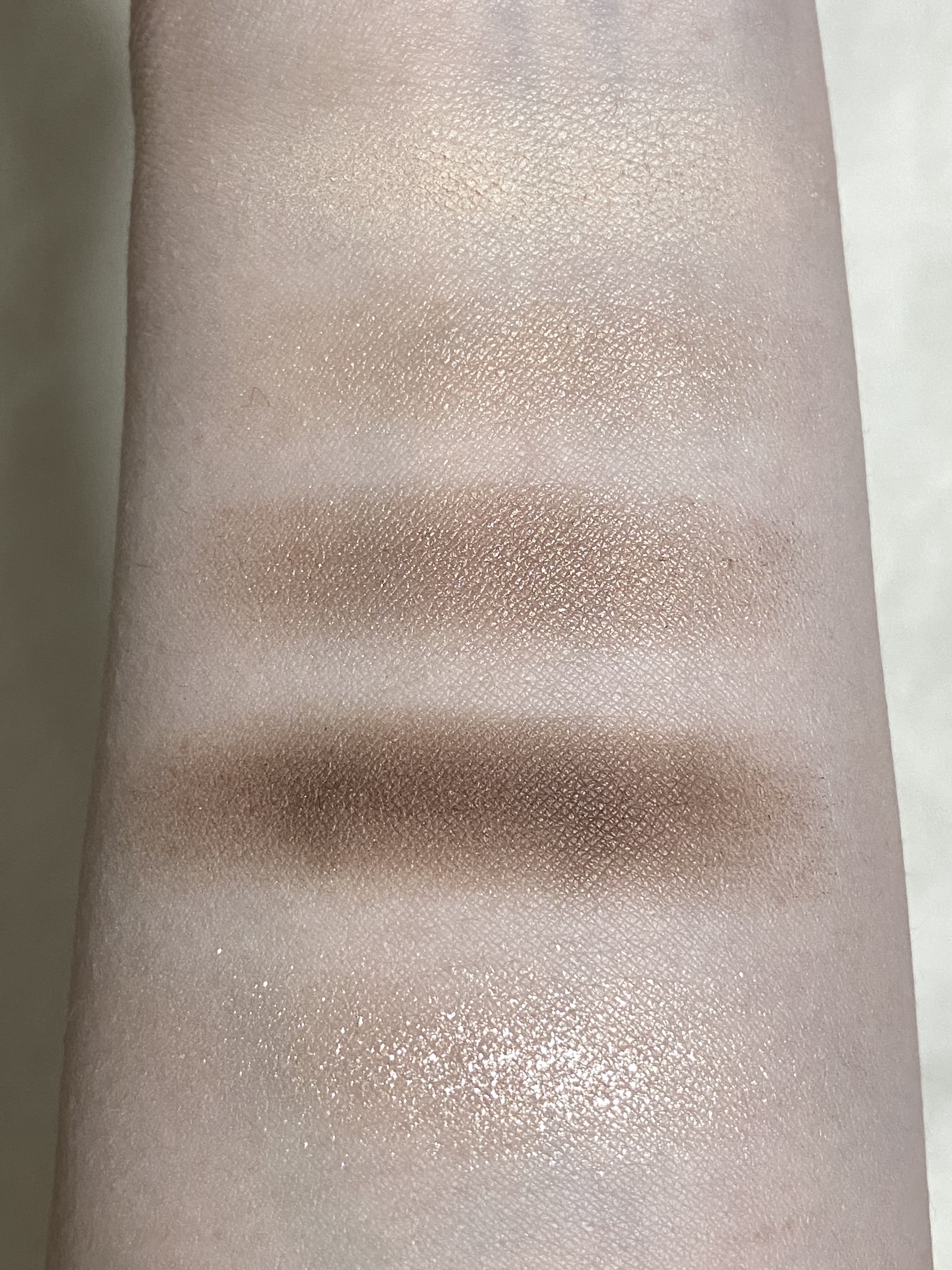 【色味】ブルベ夏でも使いやすいブラウンだと思いました🤎 【ラメorマット】目元ファンデーションのみマットで他はラメ入りです。 【良いところ】二通りの色の塗り方で印象が変えられるのがいいなと思いました!私の場合は濃い色④から薄い色②に塗っていくとかわいい発色になりました。