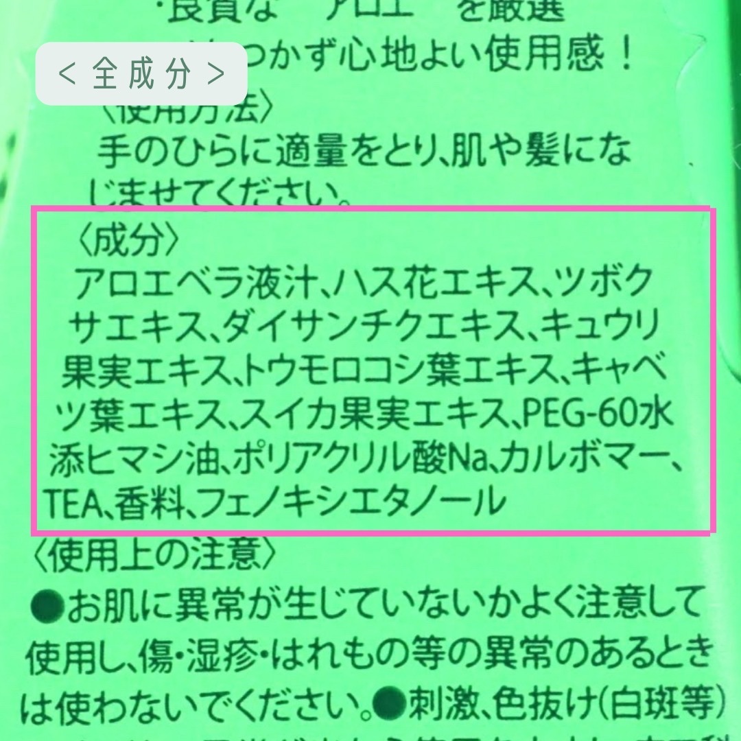 アロエ99% スージングジェル/HOLIKA HOLIKA アロエやツボクサの成分が使われたコスメを取り入れていました。 アロエベラエキスはもちろんのこと、ほかにも、たくさんの美容成分が。 容器を押さないと中身が出ない仕組みなので、使っていない時間に中身が出てキャップ周りがベタベタになることもありません◎ アロエっぽさを感じました。 肌を整えたいときに、ぴったりだと思いました。 肌荒れ防止用のジェルが欲しい方はもちろんですが、髪がパサつきやすい方にもおすすめです。