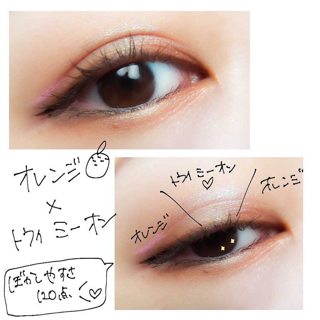 レッツロール、ラストダンス、アイライク2ザウォッチ、トライミーオンを使っています◎派手なメイクがしたい!という方はアイシャドウベースを瞼に塗ったあと指で直接アイホール全体に乗せるとしっかり発色します!ナチュラルに使いたい時にはグラデーションの...