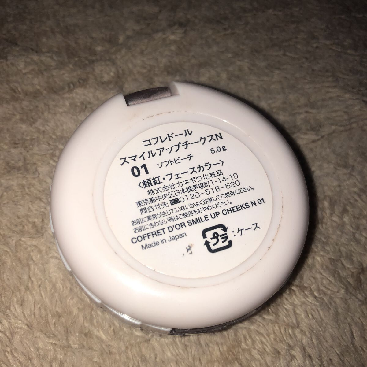 ◯コフレドールスマイルアップチークスN01ソフトピーチコーラル系ツヤチークです。頬の乾燥を隠したくて何かないかなと探していたところ、口コミが良いコチラのチークを見つけました。(クリームチークや液体ぽいのは馴染ませるのが苦手だったので...)こ...