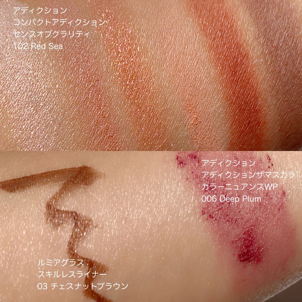 ★8月6日発売★ADDICTION秋コレクション“SENSEOFCLARITY”明日発売のADDICTIONの秋コレクション限定パレットでメイクしてみました!#アディクション#コンパクトアディクション#センスオブクラリティ102RedSea6,600円(税込)こちらは『ADDICTION2021年秋コレクションオンライン発表会』に参加させていただいた際にLulucosを通してADDICTION様よりいただきました!『102RedSea』サンゴ礁に赤く染められた海をイメージしたレッド・コーラルピンクのパレット限定カラー2色、既存カラー4色ベージュピンク、ダスティコーラル、ピンクベージュ、マホガニーなど、ほんの少しだけくすみを感じる捨て色なしの使いやすいカラーがセットされています!今回はこのパレットと、同時に明日発売されるマスカラの中から『006DeepPlum』を合わせてメイクしてみました✨明日発売されるのはアイシャドウパレット全3色、マスカラ全10色、ネイルポリッシュ全6色、リップ全5色で、アイシャドウとネイルは全て限定カラー、マスカラ、リップは定番カラーの新色となっています❤️私の1番のオススメはマスカラ!カラーは定番のブラック、ブラウンから、あえてまつ毛の存在感を消すカラーや、深みのあるカラーなどカラバリ豊富なので、好みのカラーが見つかりそう🥰私はベージュカラーと、ディープグリーンも欲しいなぁ✨スクリューブラシも濃密でブラシの間隔が細かいので、まつ毛同士をくっつきにくく綺麗にセパレート!マスカラに繊維は入っていないのですが、しっかりまつ毛をボリュームアップしつつ綺麗に伸ばしてくれて、カールもしっかりキープ!!目元の印象をさりげなくチェンジできるのが嬉しい❤️秋のコレクションも最高です🍁✨#アディクションザネイルポリッシュL#ザマットリップリキッド#アディクションザマスカラカラーニュアンスWP