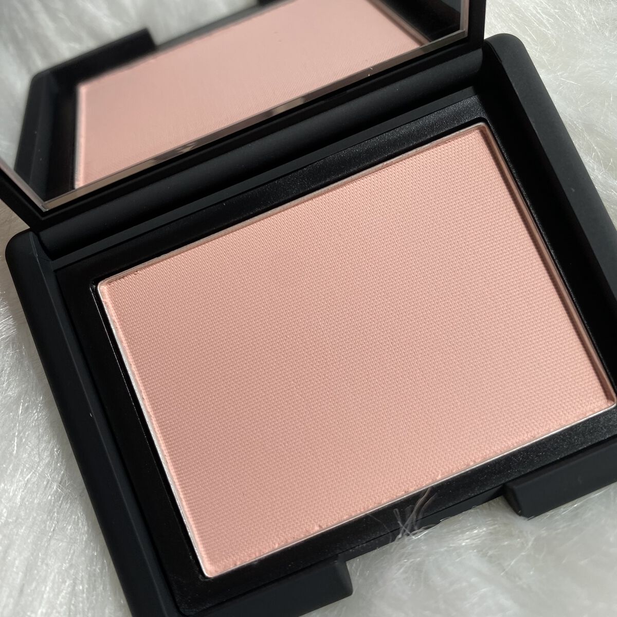 NARSのチークは一度カウンターにみにいったら種類も豊富で沼ると思います、ぜひ好きな色を見つけてみてください❣️ 塗るだけで一気に美少女みたいな感じが出るんですよね(実際には全く違うんだけど、雰囲気がそうなれます!) 若干白みっぽい甘めピンクで、赤くなりやすい頬でも少し淡く補正してくれるのと、肌をサラッとさせてくれるのがお気に入り