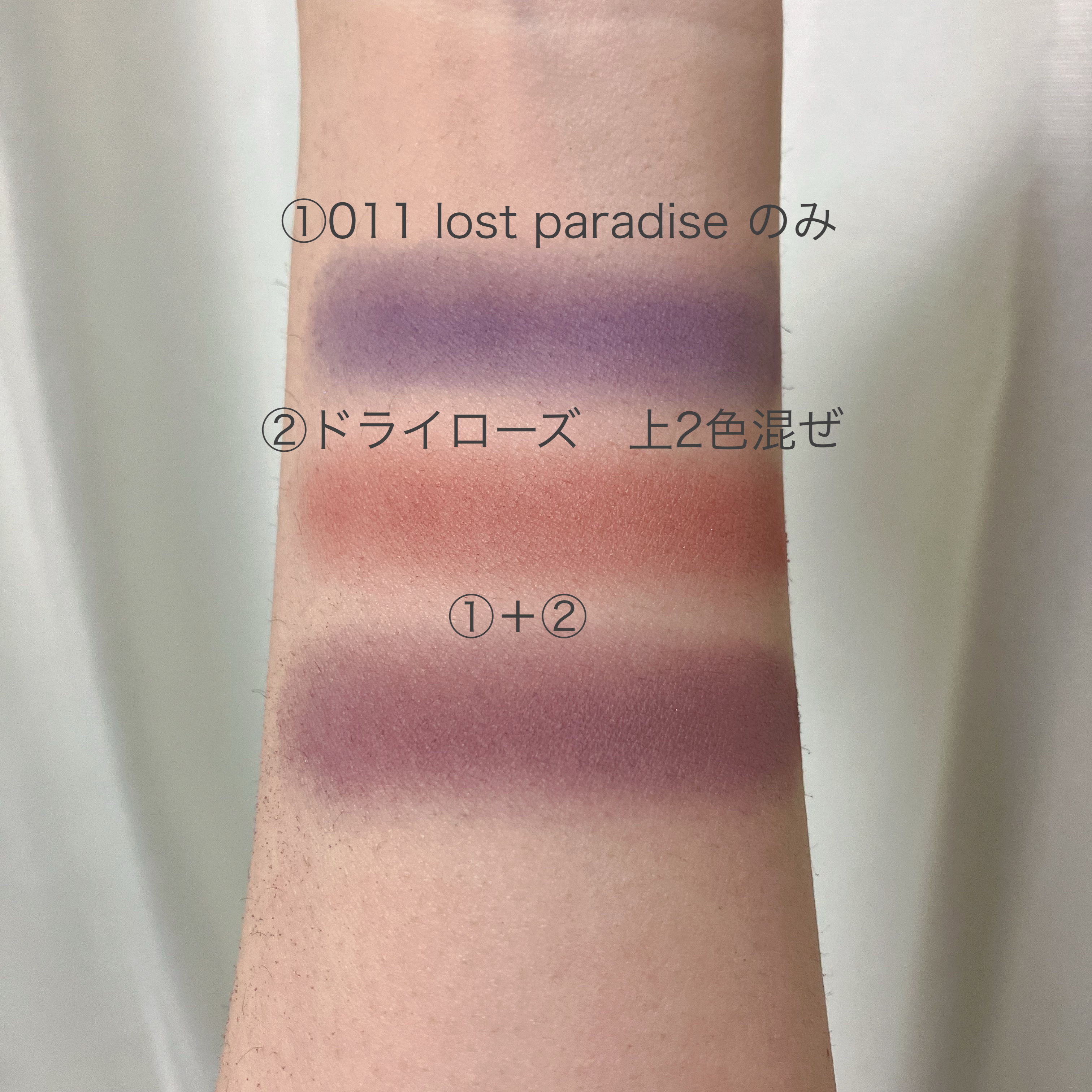 ヴィセアヴァンシングルアイカラー 011今回はLOSTPARADISEです前回のCOSMOPRISMとFROSTMIRAGEと一緒に購入しましたLOSTPARADISEは塗ったら鮮やかな感じもしますが少しくすんだような感じの紺色でとても綺麗です質感は、ラメ入りのCOSMOPRISMとFROSTMIRAGEと違ってさらっとした感じですCOSMOPRISMとFROSTMIRAGEは少ししっとりしてる感じですね組み合わせて使っていこうと思います