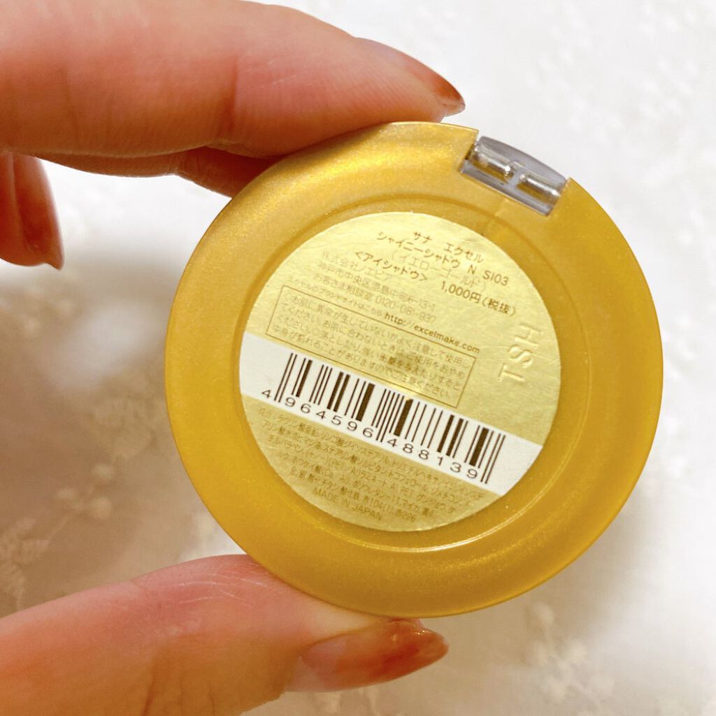 サナエクセルシャイニーシャドウNSI03(イエローゴールド)のカラーです(*´︶`*)❤︎ゴールドのラメがとても可愛いので、ラメ感の少ないアイシャドウのベースとして使ってます👏👏個人的には、リンメルのショコラスイートアイズソフトマットや、エク...