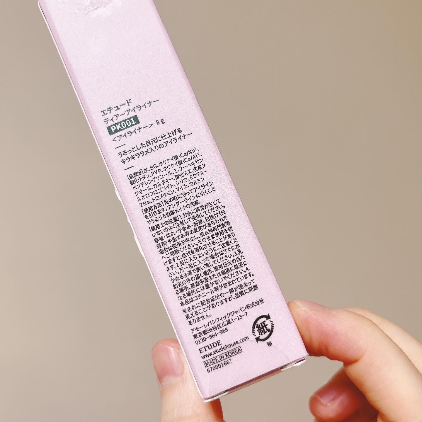 ETUDEティアーアイライナーPK001¥858(intax)↑定価私は割引価格の500円くらいで購入仕上がりはめちゃくちゃかわいい!!明るめの白をベースにうっすらピンク味があるカラーイエべ秋(自己診断&自信あり)だけどポイント使いだから全然浮かない!!ギラギラじゃなくてちゅる感ある仕上がりになるでも時間経つとパキパキって割れて剥がれちゃうから持ちが良くないし落ち方も良くない🥲目の周りって瞬きしたり笑ったり動きが激しいし、擦ったりもしちゃうから持ちって結構大事だと思うこれは割とすぐ落ちて破片だけちょっと残ってるような状態になる笑メイク後鏡の前での仕上がりは大満足だけどリピするかと言われればしない…割引価格で買えたから別に満足だけど定価じゃなくてよかったなとも思う、検討中ならもうちょいお金出してCipiCipiとか評価高いの買う方がおすすめです#ETUDE#涙袋#正直レビュー#韓国コスメ#涙袋メイク