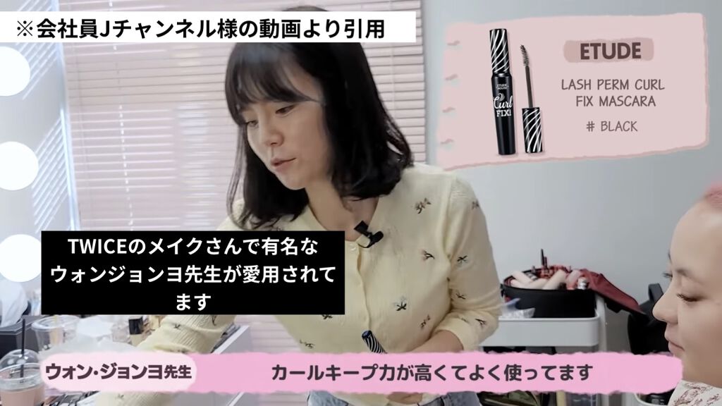 TWICEのメイクさんで有名な원정요(ウォンジョンヨ)さんが舞台メイクで何度も使用なさっている有名なマスカラです〜!いま人気のmudeやdasique、ミルクタッチなどのマスカラにも並ぶ抜群のカールキープ力と仕上がりなので、Qoo10メガ割セール中の今ぜひ購入ご検討ください〜【使った商品】ETUDEラッシュパームカールフィックスマスカラブラック(今回ご紹介するのは旧盤です!新しくリニューアルされたピンクのパッケージの方はカールキープ力が少し弱くなっているみたいです🥲まだ旧盤は普通に販売されているので好みに合わせてお買い求めください♪)【色味】シンプルなブラックです!【ロングorボリューム】グングンまつげが伸びるのにボリュームも程よく出るというガチの名品です…!使ってみてほしいです😭【キープ力】キープ力は最高です!下地が必要ないのに雨の日も一日中まつげ下がらなくて本当に信用してる人生マスカラのひとつです☂️ウォータープルーフです〜💧【テクスチャ】比較的サラッとした液で全くダマにならず塗れます!手持ちマスカラの中ではトップレベルにダマにならないです!【ブラシ】細すぎず太すぎずとても塗りやすいデザインです!【良いところ】本当にまつげが下がらないです!奥目で小粒目で奥二重(一重)なのでまつげがすぐ下がる私でもまつげが一日下がってなくて初めて付けた日にリアルに感動したのまだ覚えてますマスカラ下地もいらずダマにもならないので忙しい朝にスッと塗れて時短にもなります!【イマイチなところ】ボリュームが一切必要ない方や自まつげ感を大事にしている方、またスクールメイクやオフィスメイクの場合ほんの少しだけマスカラの主張が強く感じることがあるかもしれません…(その場合はティッシュオフをしたり、別のマスカラブラシで塗ったりすると改善できます☺️)またクレンジングする際もアイリムーバーなどでしっかり落とす必要があります以下はより詳しい説明と余談になるのでお時間ある方はぜひご覧ください〜☺️↓↓↓このマスカラ自体はかなり前からKpopアイドルのメイクさんがよく使っているということでずっと有名なマスカラですが、最近人気のメーカーのマスカラにもまったく引けを取らない良さなのでぜひみなさんに試してみて欲しくてメガ割のタイミングで載せてみました〜直近でウォンジョンヨ先生が紹介していらっしゃった動画ではICAN'TSTOPMEのナヨンさんのメイクに使用されていたみたいです!私は会社員Jチャンネルさんの動画でウォンジョンヨ先生がこの商品を使用されているのを見て、購入を決めました☺️このマスカラの良さについては・とにかくまつげが下がらない・ダマにならないということを強調したいです!初めて付けたのがたまたま雨の日で、このマスカラをつけて映画を見に行ったのですが帰ってもまつげが下がってなくて超びっくりしたんですよマジででその日からこれが人生マスカラです!本当にしょっちゅう使ってて正直このレビューの写真撮る時もうマスカラ残り少なかったです…新しく買います😭またウォンジョンヨ先生が使用されているマスカラは他にも何本かあって、クリオのキルラッシュスーパープルーフマスカラやtonymolyのザショッキングカラなども使われていました!こちらは私は所持していないので気になった方いましたらぜひご参考までに♪ウォンジョンヨ先生がこちらのマスカラや上記の他のマスカラを使う理由としては、マスカラ下地を塗っているとマスカラ下地+マスカラの重みで結局まつげが下がってしまうため単体でカールキープ力があるマスカラを使用しているとのことでした!また先生は、kpopアイドルメイクでは定番の竹串を使った火ゴテや、一本一本分けられたつけまつげなども使用しているため私たちが普通に使用する分には仕上がりは劣るかもしれませんが、やはり機能は断然ピカイチです⭐︎本当に下がらないまつげにしたい!という方はいつものメイクの時少し余裕があったらビューラーをライターで少し炙って温めてからまつげを上げるだけでも断然仕上がりに差が出ますし、火ゴテも竹串とライターがあればすぐできるので余裕ある時にぜひ試してほしいです!火ゴテのことも投稿してみたいのですがいかんせん私の目が小さくて映えないのとカメラが苦手なので難しいです…🥲ぜひご検討していただけると嬉しいです〜みなさんの人生マスカラとの出会いを祈ってます! 以上限界受験生のボタンでした#ETUDE#エチュード#エチュードハウス#ラッシュパームカールフィックスマスカラ#マスカラ#qoo10#qoo10_メガ割#メガ割#メガ割_マスカラ