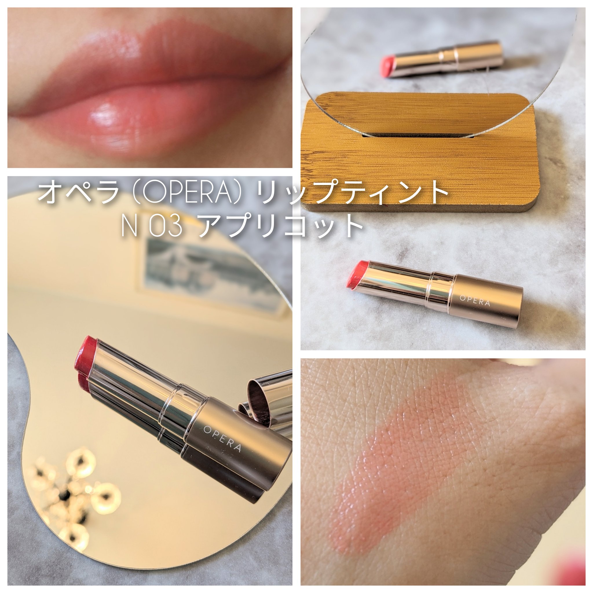 オペラリップティント03アプリコットもうこのリップは有名ですよね!ティントだしとても保湿されてスルスル塗れて発色もちょうど良いので私はほとんど毎日このリップを使ってます👼🏻4枚目はティッシュオフ後です!パッケージはシンプルでかわいいくて私は好...