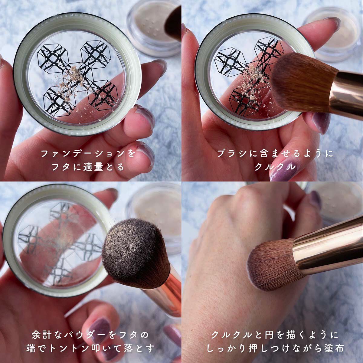 少量でもびっくりするくらいキレイに仕上がります。 特にカバーしたい部分は重ね付けで。 ツヤも良い感じです。 自分の素肌をキレイに見せることができるパウダー。 肌にやさしく、美白効果まで期待できる。 もっと化粧してる感を出す場合は重ね付けが必要です。 肌にやさしいフェンデーションを使いたい方。 多機能なファンデーションを使いたい方。