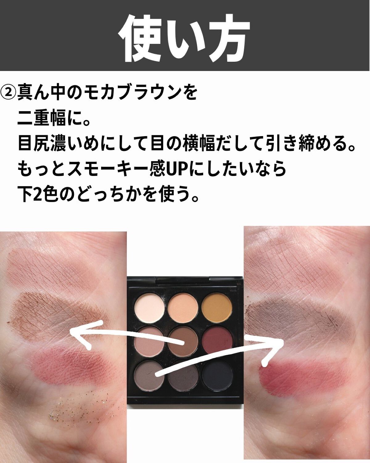 【使った商品】M・A・C スモールアイシャドウ×9 セミスウィートタイムズナイン【色もち】◯【良いところ】アイブロウ用に使用【イマイチなところ】アイシャドウとしては自分のパーソナルカラーに合わない、アイブロウとして使うと優秀だがそれだとパレッ...