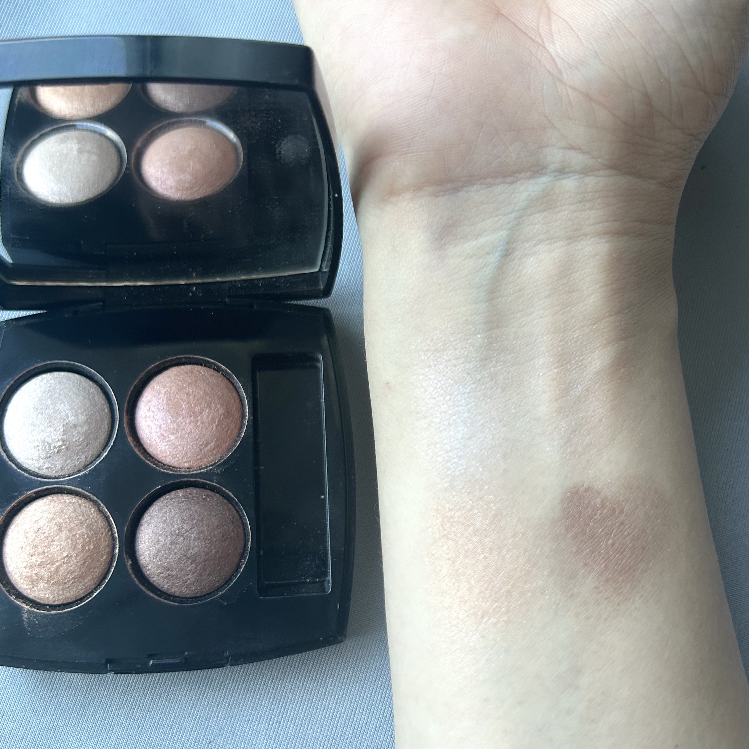 埋もれてたこの子 シャネルのレキャトルオンブル 79スパイシーズ 全部シマー系の4色、 締め色の右下の茶色も明るめなので 個人的には使いやすいです。 見た色より淡い発色なので 見たままの色を求めてる人には物足りないかも 服装やシチュエーション選ばず使えるパレットかも!